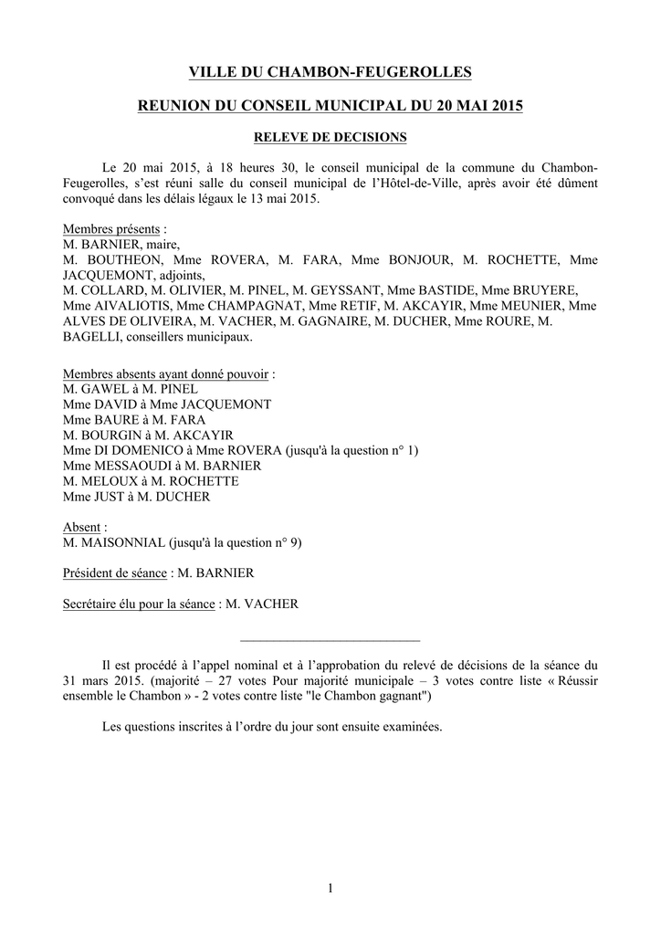 Séance du 20 mai 2015 - Le Chambon Feugerolles