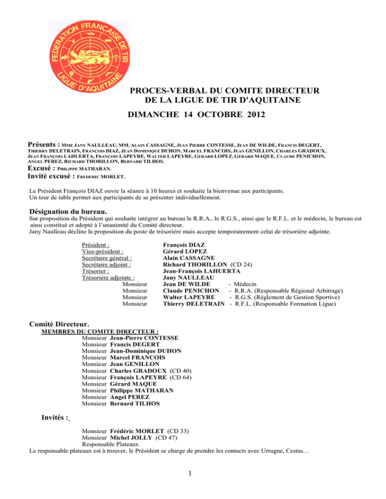 proces-verbal du comite directeur de la ligue de tir d`aquitaine