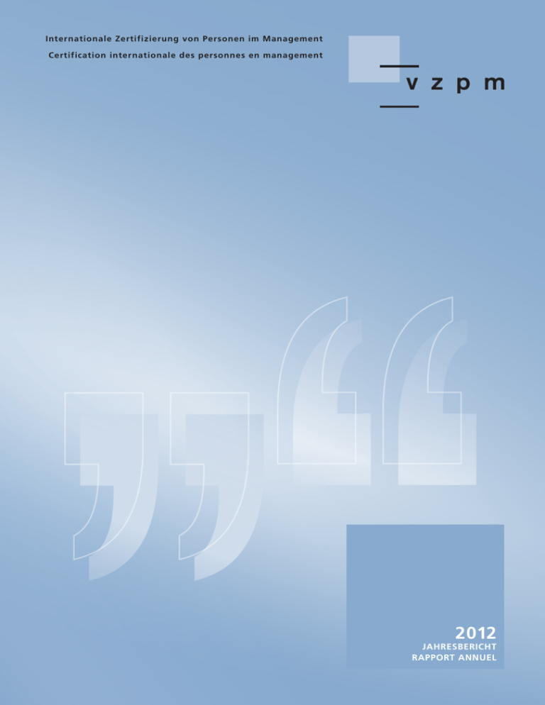 Internationale Zertifizierung von Personen im Management Certification internationale des personnes en management v z p m 2012 jahresbericht rapport annuel 02 vzpm 036 SCESe Mentions légales Impressum Herausgeber VZPM, Verein zur Zertifizierung von Personen im Management Flughofstrasse 50, CH-8152 Glattbrugg, www.vzpm.ch Konzept, Text, Projektleitung P-ART Public Relations Communications Dr. Cornelia Bachmann, Lukas Feurer, Winterthur Layout und Gestaltung ZOIX Design GmbH, Carmen Fischer, Pfungen Druck Druckerei Feldegg, Schwerzenbach Fotos VZPM; Eva-Maria Züllig, Zürich éditeur VZPM, Association pour la certification de personnes en management Flughofstrasse 50, CH-8152 Glattbrugg, www.vzpm.ch Concept, texte, direction de projet P-ART Public Relations Communications Dr Cornelia Bachmann, Lukas Feurer, Winterthour Mise en page et conception ZOIX Design GmbH, Carmen Fischer, Pfungen Traduction INTERSERV AG, Zurich Impression Druckerei Feldegg, Schwerzenbach Photos VZPM ; Eva-Maria Züllig, Zurich Inhaltsverzeichnis 04 Bericht des Präsidenten 08 Zahlen und Fakten 11 Bericht des Geschäftsführers 17 Bericht des Qualitätsleiters 20 Zertifikatsübergabefeiern 2012 23 Die Organe des VZPM 26 Liste der zertifizierten Personen 2012 Sommaire 04 Rapport du président 08 Chiffres et faits 11 Rapport du directeur 17 Rapport du responsable de l’assurance qualité 20 Cérémonies de remise de certificats 2012 23 Les organes de la VZPM 26 Liste des personnes certifiées en 2012 vzpm 03 04 vzpm BERICHT DES PRÄSIDENTEN Rapport du président DER VZPM 2012 – ERNEUT EIN REKORDJAHR! LA VZPM 2012 – UNE NOUVELLE ANNÉE RECORD ! Der VZPM ist weiterhin voll auf Kurs. Resultate, die das Geschäftsjahr 2012 auszeichnen, sind die Rekordzahlen der verliehenen Zertifikate, die weitere Professionalisierung mit der Anstellung von Jean-Pierre Widmann als vollamtlicher Geschäftsführer, die Intensivierung und Regionalisierung des Marketings sowie wichtige Weichenstellungen zur Ergänzung des Produktportfolios. La VZPM continue son chemin sur les chapeaux de roue. Les résultats les plus marquants de l’exercice 2012 sont constitués par le nombre record des certificats délivrés, la poursuite de la professionnalisation avec le recrutement de Jean-Pierre Widmann en qualité de directeurgérant à plein temps, par le fort développement et la régionalisation du marketing, ainsi que par d’importantes réorientations tendant à compléter la gamme de produits. La VZPM est un organisme à succès sans but lucratif mais qui Der VZPM ist ein erfolgreiches, nicht gewinnorientiertes, aber génère de profits. Forte d’un chiffre d’affaires annuel de près durchaus profitabel wirtschaftendes und damit sich selbst de deux millions de francs, la VZPM est financièrement indé- tragendes Unternehmen mit einem Jahresumsatz von knapp pendante. Avec six collaborateurs travaillant à plein temps et zwei Millionen Franken. Mit sechs Vollstellenäquivalenten und un pool de 100 assesseurs, nous sommes de toute évidence le einem 100-köpfigen Assessorenpool sind wir klarer Markt- leader dans notre secteur. S’appuyant sur un coeur de métier führer in unserem Sektor. Aufbauend auf dem stabilen Kern- qui reste stable, à savoir la certification en management de geschäft, den Projektmanagerzertifizierungen IPMA , nimmt projets IPMA®, la VZPM vise aujourd’hui une diversification der VZPM zurzeit eine strategische Diversifikation vor, hin zu stratégique par le lancement de produits de certifications dans Zertifizierungsprodukten in weiteren Managementdisziplinen. d’autres domaines du management. Un tel développement im- Eine derartige Entwicklung stellt höchste Anforderungen an pose d’importantes exigences aux organes de direction res- die verantwortlichen Führungsgremien. Nachdem sich der Vor- ponsables. D’abord, la direction s’est dotée dès 2011 d’une stand bereits 2011 eine neue Struktur mit klaren Ressortver- nouvelle structure et a clairement défini les responsabilités des antwortlichkeiten gegeben hatte, konnten wir nun im Oktober différents services. Ensuite, en octobre 2012, nous avons nom- 2012 Jean-Pierre Widmann zum vollamtlichen Geschäftsführer mé Jean-Pierre Widmann directeur-gérant à plein temps. Face ernennen. Wir sind zum Schluss gekommen, dass sich vor dem aux défis majeurs qui nous attendent, nous sommes arrivés à Hintergrund dieser grossen Herausforderungen die Geschäfts- la conclusion que la direction et les fonctions essentielles de führung, und auch wesentliche Geschäftsleitungspositionen, l‘administration ne peuvent plus être assurées à temps partiel. nicht mehr im Nebenamt bewältigen lassen. Das Ziel ist, bis- Notre objectif vise à remplacer par des ressources internes de herige Anstellungen auf Mandatsbasis mehrheitlich durch la VZPM la plupart des fonctions aujourd’hui assurés sur la VZPM-interne Ressourcen abzulösen. Das Jahr 2013 wird noch base de mandats. L’année 2013 sera encore une période de Übergangscharakter haben, um dann per 2014 die Wirkung transition, mais à partir de 2014 la nouvelle organisation sera der neuen Zielorganisation voll zu entfalten. entièrement opérationnelle. An dieser Stelle danke ich Vincent Ducrot, der den VZPM von Je voudrais ici remercier Vincent Ducrot pour son engagement Juli 2011 bis September 2012 operativ als Delegierter des Vor- et les précieuses impulsions qu’il a données à la VZPM en tant stands geführt hat, für sein grosses Engagement und seine que délégué du comité directeur et responsable opérationnel wertvollen Impulse. Ich freue mich ausserordentlich, dass er de juillet 2011 à septembre 2012. Je me réjouis tout particu- als Vorstandsmitglied die Geschicke des VZPM weiterhin mit- lièrement qu’il continuera d’accompagner la VZPM en tant que lenken wird. membre du comité directeur. ® BERICHT DES PRÄSIDENTEN vzpm 05 Rapport du président Après huit ans d’activité au sein du c