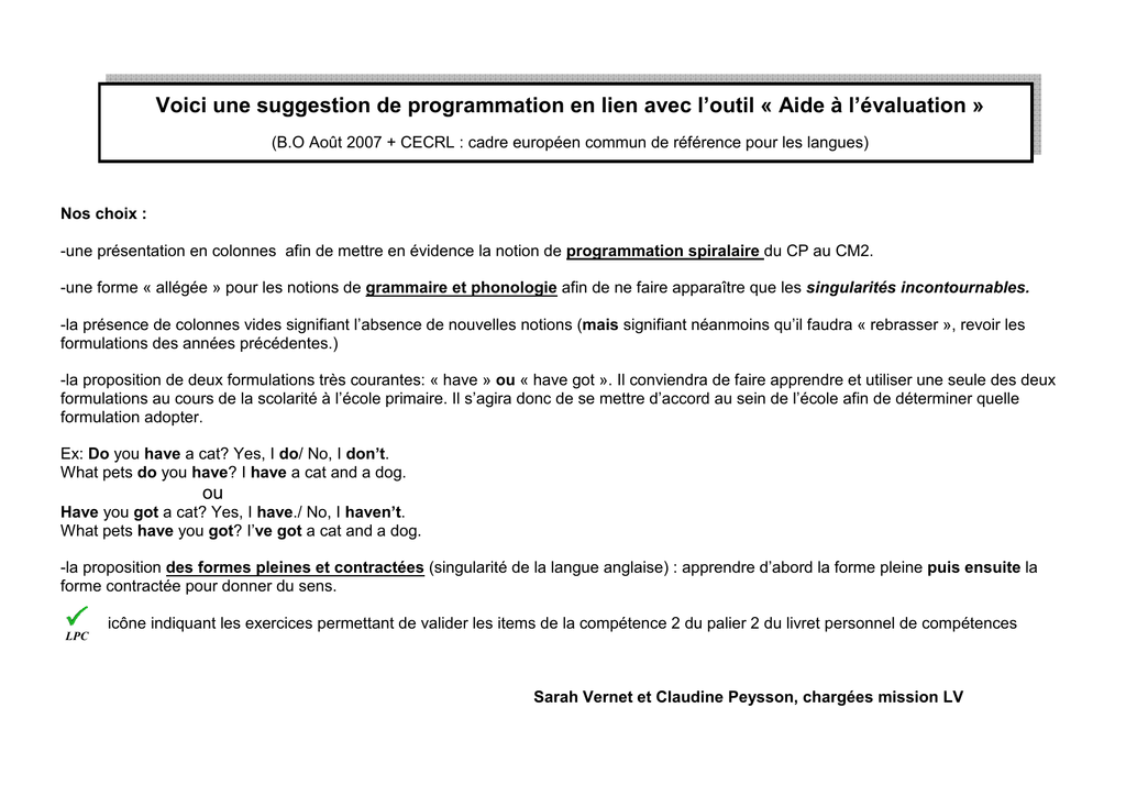 (B.O Août 2007 + CECRL : cadre européen commun de référence pour les langues)