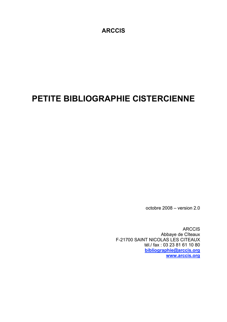 PETITE BIBLIOGRAPHIE CISTERCIENNE