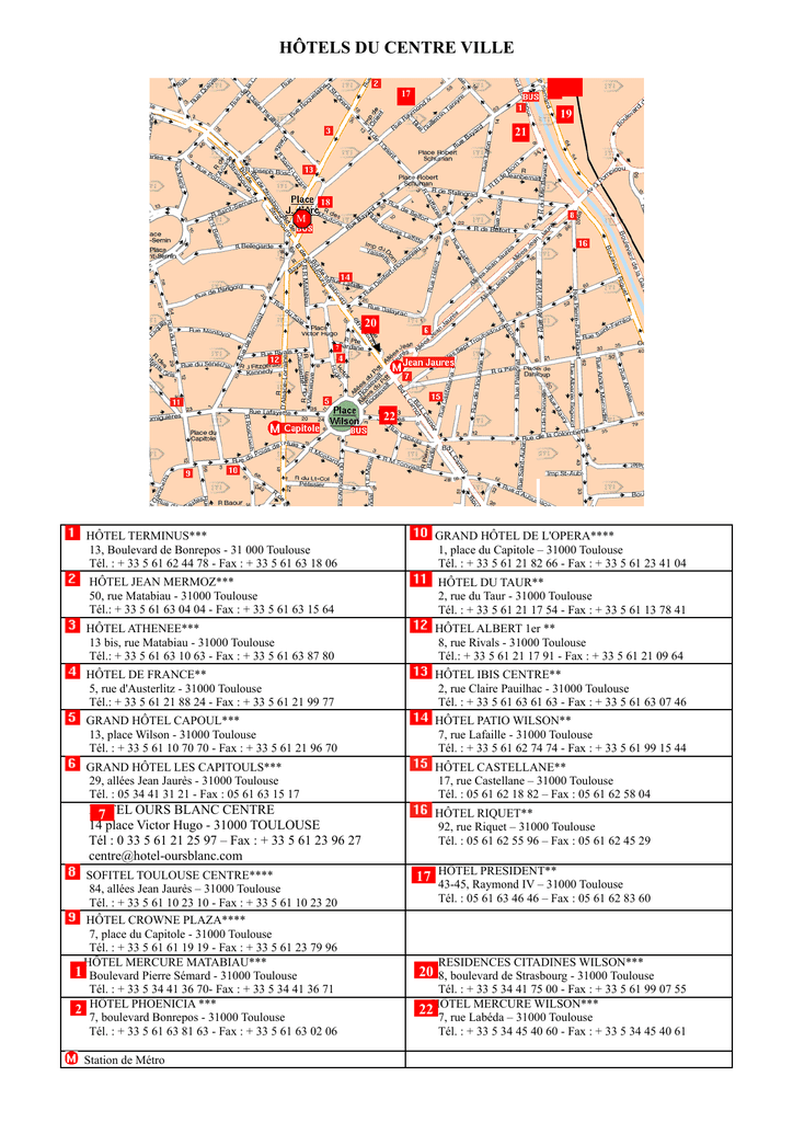 SITUATION DES HÔTELS DU CENTRE VILLE