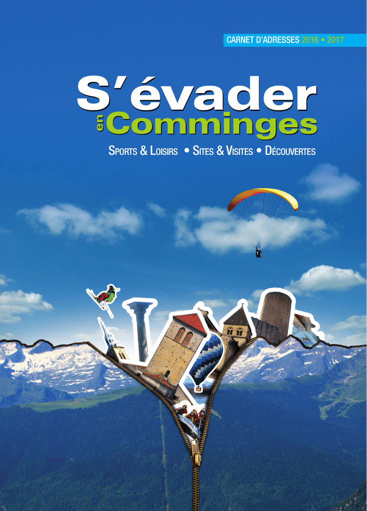 CARNET D’ADRESSES 2016 • 2017 S’évader Comminges en Comminges Sports & Loisirs • Sites & Visites • Découvertes 2 ‘‘BIENVENUE en Comminges’’ ‘‘S’évader en Comminges’’ a été conçu pour vous par l’ensemble des offices de tourisme, syndicats d’initiative et collectivités locales du Comminges. Fruit d’un travail en commun, il réunit en un seul document les sites et les professionnels du sport et des loisirs proposés sur le territoire commingeois. P S S P P P V P C 10-31-1700 Cette entreprise a fait certifier sa chaîne de contrôle. pefc-france.org LES OFFICES DE TOURISME DU COMMINGES Crédits photos : JM Emportès/ OT Luchon/ Yves Chaboussou/Service sports Ville de Saint-Gaudens/Offices de tourisme ■SI de la Vallée de l’Arbas 31160 Arbas ■SI de Ciadoux 31350 Ciadoux Tél. 05 61 90 62 05 Tél. 05 61 88 66 38 [email protected] http://www.lavalleedelarbas.fr ■OT du canton d’Aspet Maison des 3 Vallées Rue Armand Latour 31160 Aspet Tél. 05 61 94 86 51 Fax. 05 61 94 86 56 [email protected] http://www.tourisme-aspet.com ■OT des Terres d’Aurignac Avenue de Boulogne 31420 Aurignac Tél. 05 61 98 70 06 Fax. 05 61 98 71 33 [email protected] www.tourisme-aurignac.com ■OT du Haut Comminges Avenue des Thermes 31510 Barbazan Tél. 05 61 88 35 64 [email protected] [email protected] ■OT du Boulonnais Place de la mairie 31350 Boulogne-sur-Gesse Tél. 05 61 88 13 19 [email protected] www.tourismeboulonnais.com ■SI d’Encausse-les-Thermes Allée de Mendic 31160 Encausse-Les-Thermes Tél. 09 77 54 15 30 Fax. 05 61 88 81 34 [email protected] www.encausselesthermes-tourisme.fr ■OT intercommunal des Portes du Comminges Bd des Martyrs de Meilhan 31230 L’Isle-en-Dodon Tél. 05 61 79 43 69 Fax. 05 61 94 53 67 [email protected] www.tourisme-lisleendodon.com ■OT de Luchon 18 allées d’Etigny BP 29 31110 Bagnères-de-Luchon Tél. 05 61 79 21 21 Fax. 05 61 79 11 23 [email protected] www.luchon.com ■OT de Martres-Tolosane Place H. Dulion 31220 Martres-Tolosane Tél. 05 61 98 66 41 [email protected] www.tourisme-martres-tolosane.fr Informations non exhaustives, collectées en Février 2016 ■OT Intercommunal de Montréjeau Hôtel de Lassus 6, rue du Barry 31210 Montréjeau Tél. 05 62 00 79 55 Fax. 05 62 00 79 58 [email protected] ■OT intercommunal des Vallées de Saint-Beat Avenue de la Gerle 31440 Saint-Béat Tél./Fax. 05 61 79 45 98 [email protected] www.lesvalleesdesaintbeat.fr ■OT du Saint-Gaudinois 2, rue Thiers 31800 Saint-Gaudens Tél. 05 61 94 77 61 Fax. 05 61 94 77 50 [email protected] www.tourisme-stgaudens.com ■OT du canton de Saint-Martory Place de l’ancienne mairie 31360 Saint-Martory Tél. 05 61 97 40 48 [email protected] www.petitespyrenees.com ■Communauté de Communes de Salies-du-Salat 15 avenue du Comminges 31260 Mane Tél : 05 61 98 49 30 Fax. 05 61 97 12 81 [email protected] www.ccsaliesdusalat.fr ▶ 3 T M O I ▶ 3 T M S O i ▶ L T M S O ▶ T T M O ▶ M T M O SPORTS & LOISIRS 3 PARAPENTE ..................................... 3 SPORTS AERIENS.............................. 3 SPORTS D’EAUX VIVES....................... 4 PLANS D’EAU.................................... 4 PISCINES.......................................... 5 PECHE.............................................. 6 Vente de cartes de pêche ................... 6 PISCICULTURES................................. 6 CENTRES DE REMISE EN FORME........ 6 AIR PARAPENTE ▶▶ Soaring 31 rue Sylvie 31110 Luchon Tél : 05 61 79 29 23 Mèl : [email protected] - Site : soaring.fr Ouverture : toute l’année Inscription indispensable 4 B7 ▶▶ Freddy SUTRA 31110 Cier de Luchon Tél : 06 87 34 20 54 Mèl : [email protected] Site : freddysutra.free.fr Ouverture : toute l’année Inscription indispensable 4 B7 ▶▶ Odyssée Sud Laurent PRADERE 31160 Arbas Tél : 06 13 09 81 07 Mèl : [email protected] Site : http://odyssee-sud.jimdo.com Ouverture : toute l’année 4 E5 ▶▶ Surf’Air Thierry STRUXIANO 31160 Arbas Tél : 05 61 90 19 26 ou 06 23 10 89 36 Mèl : [email protected] - www.surfair.fr Ouverture : toute l’année 4 D5 ▶▶ Club de Vol Libre Profil Michel BELAYGUE - 31160 Arbas Tél : 06 36 90 42 72 Mèl : [email protected] Ouverture : toute l’année 4 D5 RANDONNEES PEDESTRES ET RAQUETTES A NEIGE......................... 7 COURSE D’ORIENTATION................. 7-8 VTT et DESCENTE EN TROTTINETTE TOUT-TERRAIN.................................. 8 DIRT MOUNTAIN................................ 8 STATIONS DE SKI............................... 8 ESCALADE...................................... 10 SPELEOLOGIE................................. 10 PARCS A THEMES............................ 10 SPORTS EQUESTRES................. 10-11 LOCATIONS D’ANES......................... 11 GOLF et leçons........................... 11-12 TIR A L’ARC..................................... 12 PAINTBALL..................................... 12 SPORTS MECANIQUES.................... 12 ESPACES DE LOISIRS....................... 12 MOBILBOARD................................. 12 TENNIS .......................................... 12 TENNIS (leçons)............................... 12 ▶▶ Pyrénées Parapente Alain BRON - Route du Mourtis 31440 Saint-Béat - Tél : 06 75 37 73 46 Mèl : [email protected] Site : http://pyrenees-parapente.fr Ouverture : toute l’année 7 jours/7 4 C6 ▶▶ Aéroclub du Comminges RD 817 31210 Clarac Tél : 05 61 89 13 08 Mèl : [email protected] Baptême de l’air en avion et ULM, brevet pilote 4 B4 ▶▶ Pyrénéesport Avenue des Pyrénées 31210 Clarac Tél. 06 34 35 04 37 Mèl : [email protected] Site : www.pyreneesport.com Parapente : baptême, apprentissage, perfectionnement 4 B4 ▶▶ Planeurs Pyrénées Comminges Aérodrome RD817 31210 Clarac Tél./Fax : 05 61 95 37 87 Mèl : [email protected] Site : www.planeurs-saintgaudens.fr Ouverture de mars à octobre de 12 h à 19 h Baptême en planeur, brevet de pilote planeur 4 B4 SPORTS AERIENS
