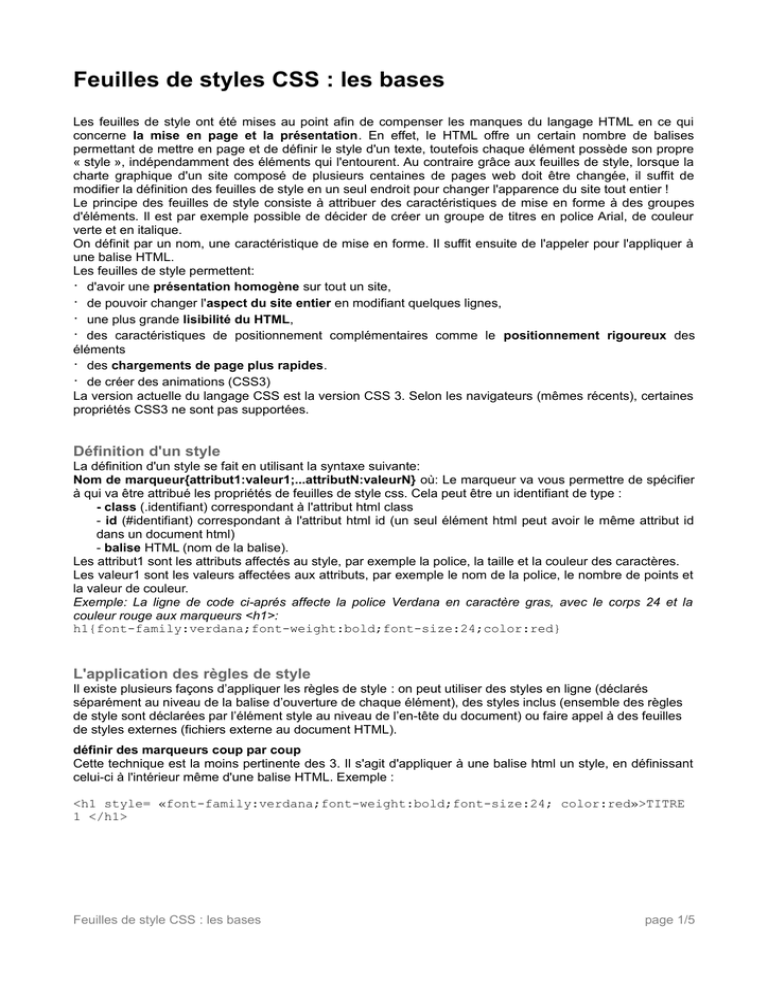 « style », indépendamment des éléments qui l'entourent. Au contraire grâce aux feuilles de style, lorsque la