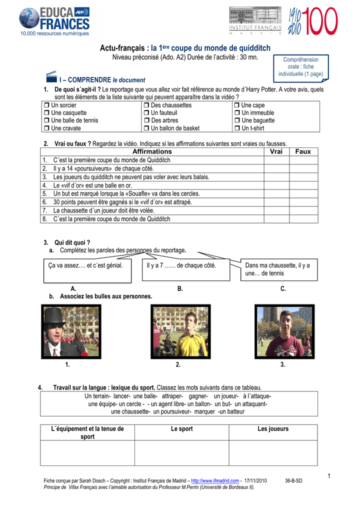 Fiche conçue par Sarah Dosch – Copyright : Institut Français de Madrid – http://www.ifmadrid.com - 17/11/2010