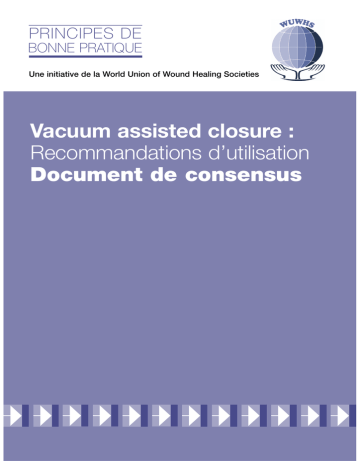 PRINCIPES DE BONNE PRATIQUE Une initiative de la World Union of Wound Healing Societies Vacuum assisted closure : Recommandations d’utilisation Document de consensus RÉDACTEUR EN CHEF : Suzie Calne RÉDACTEUR ADJOINT : Rachel Wheeler CHEF DE PROJET ÉDITORIAL : Kathy Day DIRECTEUR DE PUBLICATION : Jane Jones RÉDACTEUR PRINCIPAL : Paul Banwell MAQUETTE : Jane Walker IMPRIMÉ PAR : Printwells, Kent, R-U TRADUCTIONS POUR LES ÉDITIONS ÉTRANGÈRES : RWS Group, Londres, R-U ÉDITÉ PAR : Medical Education Partnership (MEP) Ltd. Omnibus House, 39-41 North Road Londres N7 9DP, R-U Tél : + 44 (0)20 7715 0390 Fax : +44 (0)20 7715 0391 Courriel : [email protected] Internet : www.mepltd.co.uk © MEP Ltd 2008 Soutenu par une subvention éducative sans contrepartie de KCI Europe Holding BV. Les opinions exprimées dans la présente publication sont uniquement celles des experts membres du groupe de travail et ne reflètent pas nécessairement celles de KCI. World Union of Wound Healing Societies Président actuel : Professeur Luc Téot Président, Comité de relations industrielles : Professeur Keith Harding Pour de plus amples informations, veuillez consulter le site suivant : www.wuwhs.org Comment citer ce document : World Union of Wound Healing Societies (WUWHS). Principes de bonne pratique. Vacuum assisted closure : recommandations d’utilisation. Document de consensus. Londres : MEP Ltd, 2008. AVANT-PROPOS Cette initiative opportune s’appuie sur les résultats issus de la recherche et de l’expression consensuelle de l’opinion d’un groupe d’experts (voir plus bas) afin de fournir une directive sur l’intégration réussie de la technique de fermeture des plaies par pression négative (V.A.C.® Therapy) dans la pratique clinique. Le document évalue tout particulièrement l’utilisation potentielle de ce système dans les indications suivantes*: ulcères du pied diabétique, ulcères de jambe complexes, escarres, plaies sternales déhiscentes, plaies abdominales ouvertes et plaies traumatiques. De plus, ce document prend en considération la qualité de vie des patients et le rapport coûtefficacité du système, deux paramètres dont l’importance est grandissante lors de l’évaluation d’un traitement. Par ailleurs, ce document souligne des questions qui devront faire l’objet d’une recherche future. Il est conçu pour être à la fois pratique et adaptable à l’utilisation locale dans tous les pays du monde. Professeur Keith Harding EXPERTS MEMBRES DU GROUPE DE TRAVAIL Jan Apelqvist, Hôpital universitaire de Malmö, Division des sciences cliniques, Université de Lund (Suède) David G Armstrong, Faculté de Médecine et de Sciences Rosalind Franklin, Illinois (É. U.) Matthias Augustin, Hôpital Universitaire de Hamburg (Allemagne) Mona Baharestani, Université d’Etat de l’East Tennesse, Tennessee; James H Quillen Centre médical du ministère des vétérans, Tennessee (É. U.) Paul Banwell, Hôpital Reine Victoria, NHS Foundation Trust, East Grinstead (Co-président, R-U) Luca Dalla Paola, Hôpital Abano Terme, Padoue (Italie) Anand Deva, Hôpital de Liverpool, Nouvelle-Galles du Sud (Australie) William Ennis, Université de l’Illinois, Chicago (É. U.) Joel Fish, Centre des Sciences de la Santé de Sunnybrook, Toronto (Canada) Wilhelm Fleischmann, Hôpitaux de Ludwigsburg-Bietigheim, BietigheimBissingen (Allemagne) Subhas Gupta, Université Loma Linda, Californie (É. U.) Ronny Gustafsson, Hôpital Universitaire de Lund (Suède) Keith Harding, Unité de Recherche en Cicatrisation, Université de Cardiff (Co-président, R-U) Raymund E Horch, Université Friedrich-Alexander de ErlangenNuremberg (Allemagne) Richard Ingemansson, Hôpital Universitaire de Lund (Suède) Gerrolt Jukema, Centre Médical Universitaire VU, Amsterdam (Pays-Bas) James Mahoney, Hôpital St Michel, Toronto (Canada) Chantal Mouës, Centre Médical de l’Université Erasmus, Rotterdam (Pays-Bas) Patricia Price, Faculté de Médecine, Université de Cardiff (R-U) Javier Soldevilla Ágreda, Université de La Rioja EUE, Logroño (Espagne) Colin Song, Hôpital Général de Singapour (Singapour) Luc Téot, Hôpital Lapeyronie, Montpellier (France) Paul Trueman, Université de York (R-U) Kathryn Vowden, Hôpitaux Universitaires de Bradford, NHS Foundation Trust et Université de Bradford (R-U) Peter Vowden, Hôpitaux Universitaires de Bradford, NHS Foundation Trust et Université de Bradford (R-U) Thomas Wild, Faculté de Médecine de Vienne (Autriche) * Ce document donne des recommandations relatives à l’utilisation de la thérapie VAC dans six types de plaie sélectionnés. Cependant, il est à noter que la thérapie VAC comporte des applications dans d’autres types de plaies qui ne sont pas mentionnées dans ce document. RECOMMANDATIONS D’UTILISATION 1. European Wound Management Association. Document de Référence : La pression négative topique dans la prise en charge des plaies. Londres: MEP Ltd, 2007. 2. Banwell P. Topical negative pressure therapy in wound care. J Wound Care 1999; 8(2): 79-84. 3. Ennis WJ, Lee C, Vargas M, Meneses O. Wound outcomes from a single practice at a subacute wound care unit and two hospital based outpatient wound clinics. Wounds 2004; 16(5): 164-72. 4. Beier JP, Horch R. Surgical management of pressure ulcers. In: Banwell P, Harding K (Eds). Vacuum Assisted ClosureTM Therapy: Science and practice. London: MEP Ltd, 2006. La technique de fermeture des plaies par pression négative (VAC) a contribué à améliorer les résultats de traitement des plaies et a conduit, au cours des dix dernières années, à un certain nombre de changements importants dans la pratique clinique1,2. Le système VAC doit être utilisé comme partie intégrante d’un plan de traitement complet et individualisé et il est indiqué en cas de plaies aiguës ou chroniques. DÉROULEMENT DU TRAITEMENT Quelle que soit la situation, il convient dans un premier temps d’aborder puis de 