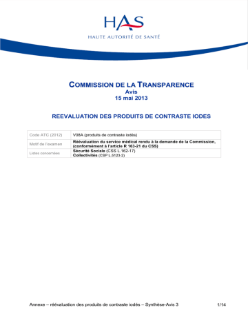 Annexe – réévaluation des produits de contraste iodés – Synthèse-Avis 3