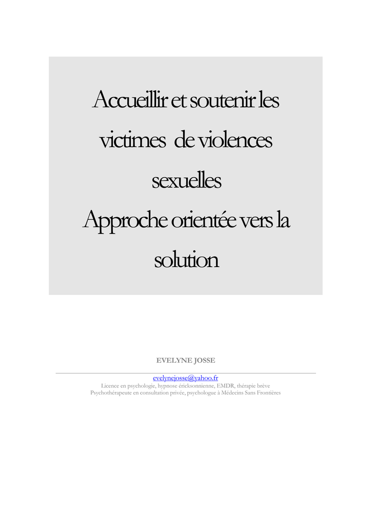 Accueillir et soutenir les victimes de violences sexuelles Approche