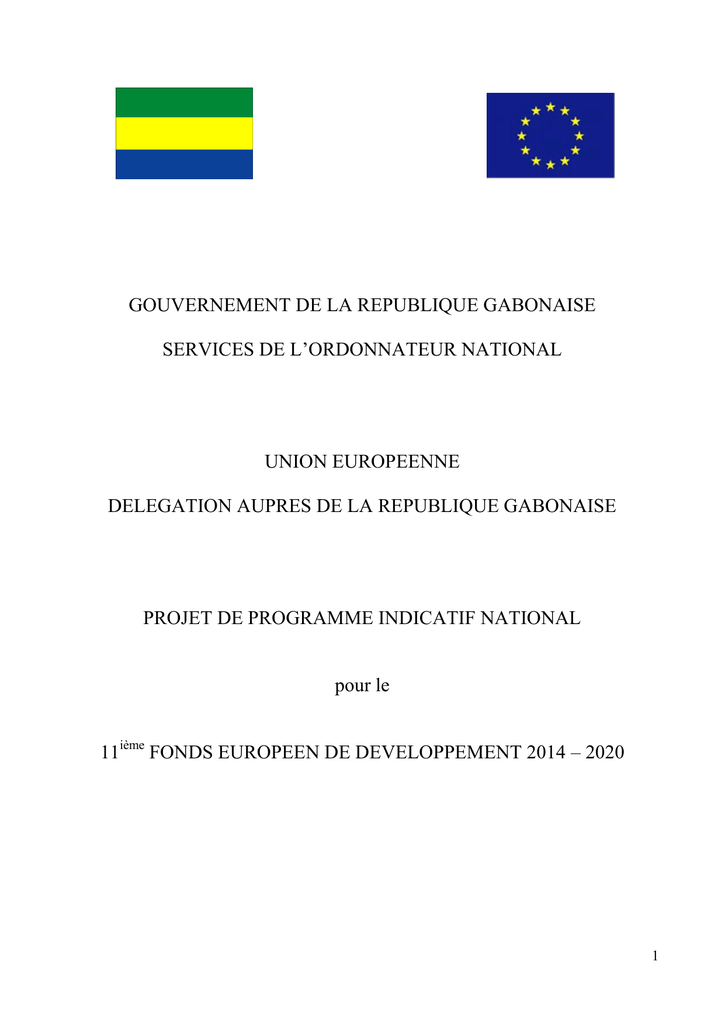 GOUVERNEMENT DE LA REPUBLIQUE GABONAISE SERVICES DE L’ORDONNATEUR NATIONAL UNION EUROPEENNE DELEGATION AUPRES DE LA REPUBLIQUE GABONAISE PROJET DE PROGRAMME INDICATIF NATIONAL pour le 11ième FONDS EUROPEEN DE DEVELOPPEMENT 2014 – 2020 1 PROGRAMME INDICATIF PLURIANNUEL 2014-2020 POUR LA REPUBLIQUE GABONAISE 1. Les lignes générales de la réponse de l'UE 1.1. Objectifs stratégiques de la relation de l'UE avec le pays partenaire Les objectifs stratégiques de l'UE avec le Gabon se déclinent dans trois domaines : 1) politique ; 2) économique ; 3) aide extérieure. - Dans le domaine politique, l'UE vise à : i) maintenir des relations politiques étroites à travers un dialogue politique régulier avec le gouvernement gabonais ; ii) promouvoir les valeurs de démocratie, de bonne gouvernance, d'Etat de droit et des droits de l'homme ; iii) appuyer l'intégration régionale et l'agenda de paix et sécurité. L'UE soutient des mesures pour améliorer le cadre légal et appuie les initiatives de bonne gouvernance afin de soutenir le gouvernement pour la fourniture des services de base à la population. - Sur le plan économique, l'UE appuie le pays pour qu'il intègre le commerce dans les politiques de développement afin de promouvoir la croissance et l'emploi. L'UE promeut l'intégration économique du Gabon dans les marchés régionaux et mondiaux, appuie l'amélioration de l'environnement des affaires et les partenariats avec le secteur privé et soutient les négociations dans le cadre des Accords de Partenariats Economiques. Un Accord de partenariat économique régional en cours de négociation, devrait régir l'ensemble des relations commerciales entre l'UE et le Gabon et aider ce dernier à atteindre ses objectifs d'émergence à l'horizon 2025. Le mauvais classement du Gabon dans les indices de gouvernance (Ibrahim Index, doing business) risque d'hypothéquer son objectif d'émergence pour 2025. Dans le cadre du processus FLEGT, la conclusion d'un Accord de Partenariat Volontaire permettrait d'appuyer les efforts du Gabon en matière de gouvernance forestière et de lutte contre l'exploitation illégale ainsi que de promouvoir un accès des bois gabonais au marché européen. Un Accord de partenariat existe dans le domaine de la pêche, avec une importance particulière pour le Gabon dans le cadre du projet Gabon vert (volet Gabon bleu). Il serait bénéfique d'en tenir compte pour la coordination et la cohérence des actions du programme national, ainsi que des actions du programme indicatif régional ou d'autres programmes thématiques. Dans le domaine de l'éducation technique et professionnelle, le renforcement d'éducation dans le domaine halieutique et gestion des pêches apporterait un bénéfice à l'application de l'accord, avec des possibilités d'emploi pour les acteurs gabonais. - Dans le domaine de l'aide extérieure, l'objectif global de l'UE est de promouvoir une croissance et un développement durables et inclusifs pour réduire la pauvreté au Gabon à travers l'appui à la mise en œuvre du "Plan Stratégique Gabon Emergent" (PSGE, 2025). Ce dernier repose sur trois piliers : i) Le Gabon Vert: pour valoriser durablement ses forêts et son littoral maritime à travers l’industrie du bois, de l’agriculture, de la pêche et de l’écotourisme; ii) le Gabon Industriel: pour diversifier son économie par la valorisation locale des matières premières; et, iii) le Gabon des Services pour développer les infrastructures et valoriser les ressources humaines afin de positionner le Gabon comme une référence régionale dans les services financiers, les nouvelles technologies de l’information, les métiers de l’économie verte, de l’enseignement supérieur et de la santé. En ce qui concerne les modalités de mise en œuvre de l'aide, c'est l'approche projet qui est privilégiée. 1.2. Choix des secteurs 2 1.2.1. Justification des secteurs Secteur unique: Promotion de l'Emploi, via l'Education Technique et Professionnelle (ETP) Le choix du secteur de concentration a été guidé par la recherche d'un impact maximum dans un des secteurs identifié comme levier de croissance et sur lequel l'UE a déjà investi et acquis une expérience probante. La promotion de l'enseignement technique et de la formation et insertion professionnelle s'inscrit dans le cadre des priorités de l'UE et du gouvernement gabonais: 1/ La communication de 2011 de la Commission européenne «Accroître l’impact de la politique de développement de l’UE: un programme pour le changement" recommande de cibler l'aide en faveur d'une croissance inclusive et durable au service du développement humain et de promouvoir une économie capable de générer de la croissance, notamment dans l'économie verte, de créer des emplois et ainsi contribuer à la réduction de la pauvreté. 2/ L'axe "Renforcement du capital humain", Volume 6 du PSGE: vise à "créer un capital humain formé de citoyens responsables, compétents et capables de réaliser les piliers de la vision d’émergence". L’économie gabonaise demeure une économie tournée vers l'extérieur dont les performances sont en grande partie fonction de l’évolution des cours des matières premières, principalement du pétrole. Outre ce dernier, les mines, la filière forestière et le secteur des services sont les principaux contributeurs à la création de richesse nationale. Face au déclin annoncé du secteur pétrolier, le Gabon affiche l’ambition de devenir, à l’horizon 2025, un pays émergent à partir d’une stratégie de développement de son économie fondée sur trois piliers : le Gabon Vert, le Gabon Industriel et le Gabon des Services. Pour garantir le succès et les impacts sociaux de cette politique de diversification économique, la formation de la main d'œuvre locale est cruciale, l’éducation-formation étant un facteur essentiel de la croissance à long terme. Si le système éducatif gabonais se carac