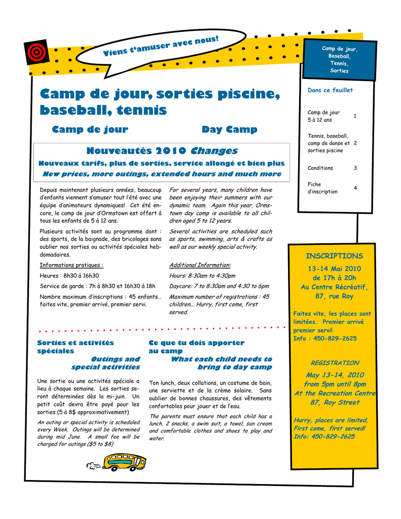 Feuillet camp 2010 - Municipalité d`Ormstown