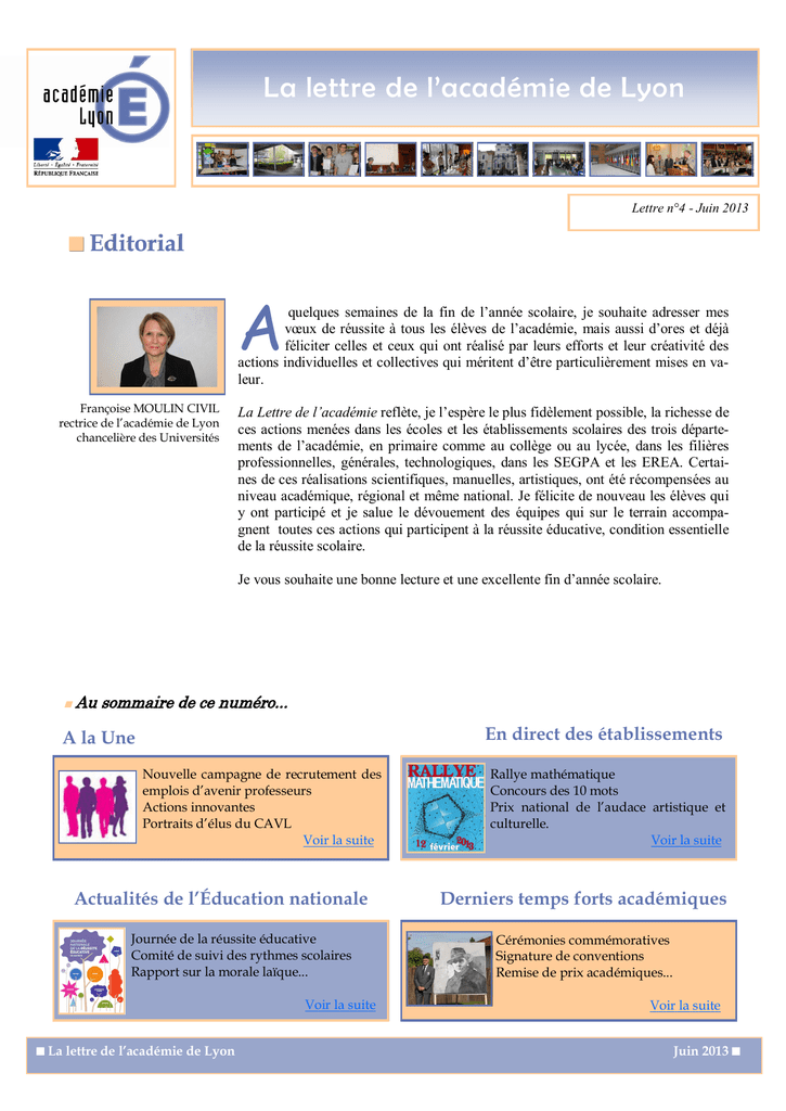La lettre de l`académie de Lyon - Les DSDEN de l`académie de Lyon