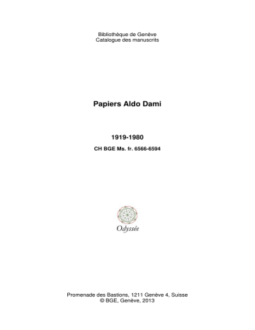 Institut européen de l'Université de Genève AP 5: Fonds Aldo Dami 1898-1977