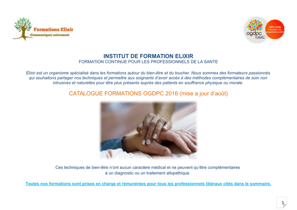 INSTITUT DE FORMATION ELIXIR CATALOGUE FORMATIONS