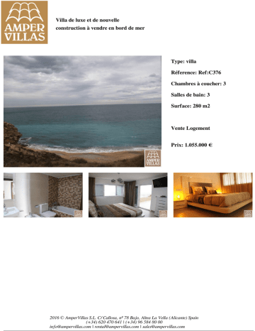 Villa de luxe et de nouvelle construction à vendre en bord de mer Type: villa Réference: Ref:C376 Chambres à coucher: 3 Salles de bain: 3 Surface: 280 m2 Vente Logement Prix: 1.055.000 € 2016 © AmperVillas S.L. C/ Callosa, nº 78 Bajo, Altea La Vella (Alicante) Spain (+34) 620 470 641 | (+34) 96 584 80 00 [email protected] | [email protected] | [email protected] Powered by TCPDF (www.tcpdf.org)