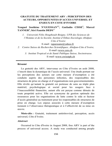 156 GRATUITE DU TRAITEMENT ARV : PERCEPTION DES