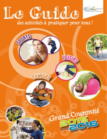 Le Guide Le Guide des activités à pratiquer Editorial Suite au succès des précédents numéros, j’ai le grand plaisir de vous inviter à découvrir cette nouvelle édition du Guide des activités à pratiquer dans le Grand Couronné. Une saison riche, dynamique et citoyenne s’annonce ! Riche, car près d’une centaine d’associations sont représentées dans les domaines sportifs, culturels, de loisirs, d’amitiés et d’entraide. Nous pouvons être fiers de cette diversité et de ce grand nombre. Dynamique, car les activités étoffent le calendrier en nous proposant des rendezvous chaque jour. Citoyenne, car l’engagement des bénévoles est source d’échanges, de moments conviviaux et d’enrichissement. Cette année encore, les bénévoles des associations et municipalités vous proposent pléthore de nouveautés ! Mon espoir est que ce guide soit pour vous un véritable partenaire et qu’il suscite des vocations parmi les jeunes et les moins jeunes, afin de pérenniser et d’assurer l’avenir des associations, lieux de vie et de compréhension dans nos villages. Christian GUILLAUME, Président de la Communauté de Communes du Grand Couronné 2 Territoire de vie, Territoire d’envies ! Moncel sur Seille Bouxières aux Chênes Eulmont Amance Mazerulles Sornéville Dommartin Laître Champenoux sous sous Erbéviller Amance Amance sur Laneuvelotte Amezule Agincourt Velaine sous Réméréville Amance Cerville Buissoncourt Gellenoncourt Lenoncourt Haraucourt té Communau s e de Commun Grand Co Sommaire LOisirs Sports Marche.................................................................p6 Cycles.......................................................................p6 Football................................................................p7 Sport de combats........................................p8 Gym........................................................................p9 Zumba................................................................p11 Relaxation......................................................p11 Sports de raquettes................................p13 Equitation.....................................................p14 Aviation...........................................................p15 Sports canins..............................................p15 Pétanque..........................................................p15 culture Jeux.......................................................................p22 Rencontres et partage.......................p22 Activités manuelles.............................p23 Nature...............................................................p24 Solidarité.........................................................p26 Histoire locale, mémoire...............p27 Enseignement..........................................p28 centres de LOisirs Centres de loisirs.....................................p29 et aussi... Arts multimédias..................................p16 Cinéma...............................................................p17 Arts plastiques..........................................p17 Musique et chant..................................p18 Arts du spectacle.....................................p18 Danse..................................................................p19 Bibliothèques.............................................p20 Jeunesse et Territoire..........................p30 La fabrique ludique du RAM..p30 La Maison du Sel...................................p31 Info A dhésio La cart ns : e valable d’adhésion à u pour le s activit n Foyer Rural Foyers est Ruraux é du Gra s de tous les nd Cou ronné. uronné Communauté de Communes du Grand Couronné - Edition 2015/2016 3 Le Guide Le Guide des activités à pratiquer Le respect des règles, la passion et l’engagement personnel sont des caractéristiques du monde associatif. Au-delà du plaisir personnel, le choix d’une activité donne avant tout l’occasion d’aller au-devant des autres. Nous vous invitons à vivre avec bonheur cette solidarité d’esprit et de coeur. Pour le plus grand bien de chacun ! Bien choisir Intérêt Objectif Budget repérer ses centres d’intérêts Vous vous préparez à rénover votre jardin ? Vous préférez le grand air à l’ambiance feutrée d’une salle de sport ? Vous rêvez depuis longtemps de «brûler les planches»? Pour évaluer au mieux vos centres d’intérêts, effectuez un bilan précis de vos attentes, de vos expériences et de votre motivation. Posez-vous trois questions essentielles : - Quel est mon objectif ? - L’activité répond-elle à ce but ? - Ai-je envie de m’impliquer ? DéFinir son objectif En vous fixant votre propre objectif, vous gardez votre cap. - Il peut viser l’amélioration ou l’entretien d’une qualité personnelle (physique, sportive, intellectuelle); - Il peut être le besoin de partager; - Il peut constituer la base d’une occupation régulière, participer à l’acquisition d’un savoir-faire... Quel qu’il soit, la connaissance de cet objectif contribuera à maintenir votre enthousiasme intact au sein du groupe. Connaître son budget 4 Equipement sportif, déplacements, matériel sophistiqué, assurance... certaines activités nécessitent des budgets importants : n’hésitez pas à questionner précisément vos interlocuteurs associatifs ou communaux sur ce point avant de vous engager dans la pratique d’une activité. Les équipements d’occasion offrent souvent des petits prix intéressants. Se décider Le Guide des activités à pratiquer son activité Santé Compétences Disponibilité faire le point sur sa santé Exercer une discipline sportive doit avant tout procurer plaisir et bien-être. Mais la recherche du dépassement de soi pousse souvent l’athlète, même amateur, à repousser les limites de ses capacités personnelles. La pratique d’une activité physique, que l’on soit jeune ou moins jeune, doit, de ce fait, être surveillée par votre médec