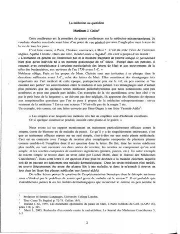 Cette conférence est la première de quatre conférences sur la médecine mésopotamienne. Je