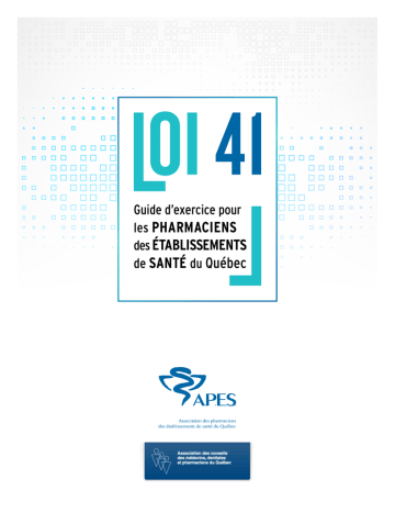 Guide d’exercice pour les PHARMACIENS des ÉTABLISSEMENTS de SANTÉ du Québec RÉDACTION : Nathalie Marceau, pharmacienne, conseillère professionnelle, A.P.E.S. COLLABORATEURS : Élisabeth Bourassa, pharmacienne, CHU de Québec – Université Laval Josée Martineau, pharmacienne, CISSS de Laval Marc Parent, pharmacien, CHU de Québec – Université Laval Reynald Tremblay, pharmacien, CISSS des Îles L’ACMDPQ et l’A.P.E.S. remercient le Collège des médecins du Québec (CMQ) et l’Ordre des pharmaciens du Québec (OPQ) d’avoir lu et commenté le présent document. L’ACMDPQ et l’A.P.E.S. tiennent également à remercier l’ensemble des collaborateurs ainsi que les personnes qui ont participé à la rédaction de ce guide d’exercice. Guide d’exercice pour les PHARMACIENS des ÉTABLISSEMENTS de SANTÉ du Québec TABLE DES MATIÈRES AVANT-PROPOS.......................................................................................................................05 INTRODUCTION....................................................................................................................... 07 1. Notions élémentaires / Principes de base.......................................................................09 1.1. Médecin traitant.......................................................................................................... 09 1.2. Dossier-patient............................................................................................................ 09 1.3. Communication........................................................................................................... 09 1.4. Obligations déontologiques......................................................................................... 10 1.5. Réglementation fédérale............................................................................................. 10 1.6. Continuité des soins..................................................................................................... 10 2. Nouvelles activités du pharmacien.................................................................................... 11 2.1. Prolonger l’ordonnance d’un médecin..........................................................................11 2.2. Ajuster l’ordonnance d’un médecin..............................................................................12 2.2.1.. Modification de la dose pour assurer la sécurité du patient.............................12 2.2.2.. Modification de la dose pour l’atteinte des cibles thérapeutiques....................12 2.2.3.. Modification de la forme, de la posologie ou de la quantité..............................13 2.2.4.. Effets de l’activité d’ajustement........................................................................ 14 2.3. Substitution thérapeutique d’un médicament lors de rupture complète d’approvisionnement................................................................. 14 2.4. Prescrire et interpréter des analyses de laboratoire en établissement de santé........................................................................................... 15 2.5. Prescrire un médicament lorsqu’aucun diagnostic n’est requis................................................................................................................... 16 2.6. Prescrire un médicament pour une condition mineure ayant déjà fait l’objet d’un diagnostic et d’un traitement...............................................................................17 2.7. Administrer un médicament afin d’en démontrer l’usage approprié.......................................................................................................................19 3. Implantation du cadre de la Loi 41 en établissement de santé...................................... 21 3.1. Formation d’une équipe chargée de l’implantation.....................................................21 3.2. Formation réglementaire pour tous les pharmaciens..................................................21 03 4. Plan d’implantation............................................................................................................ 22 4.1. Évaluation de la situation actuelle et des besoins......................................................22 4.2. Réflexion concernant l’offre de soins et services pharmaceutiques..........................23 4.3. Modifications à apporter aux cadres cliniques et administratifs................................24 04 4.4. Ajustement de l’environnement de pratique...............................................................25 4.4.1.. Secteur de la validation des ordonnances (Distribution).................................25 4.4.2.. Ordonnances collectives...................................................................................27 4.4.3.. Prescription des analyses de laboratoire..........................................................28 4.5. Inscription des interventions.......................................................................................29 4.6. Encadrement du suivi des activités pharmaceutiques.............................................. 30 4.7. Vigie et évaluation de la qualité de l’acte....................................................................31 5. Plan de communication..................................................................................................... 32 5.1. Communication avec les différentes directions..........................................................32 5.2. Communication avec les collaborateurs cliniques......................................................32 5.3. Communication avec les collaborateurs régionaux....................................................33 6. Conclusion........................................................................................................................... 35 Annexe I Éléments à considérer lors de l’ajustement
