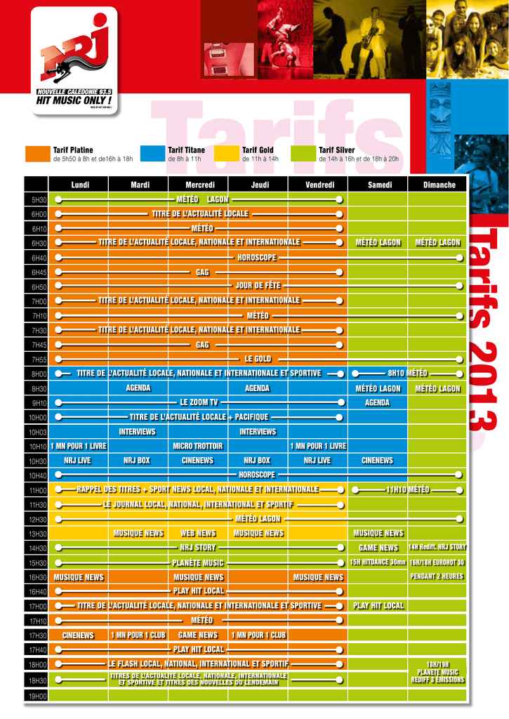 Tarifs 2013 - NRJ Nouvelle Calédonie