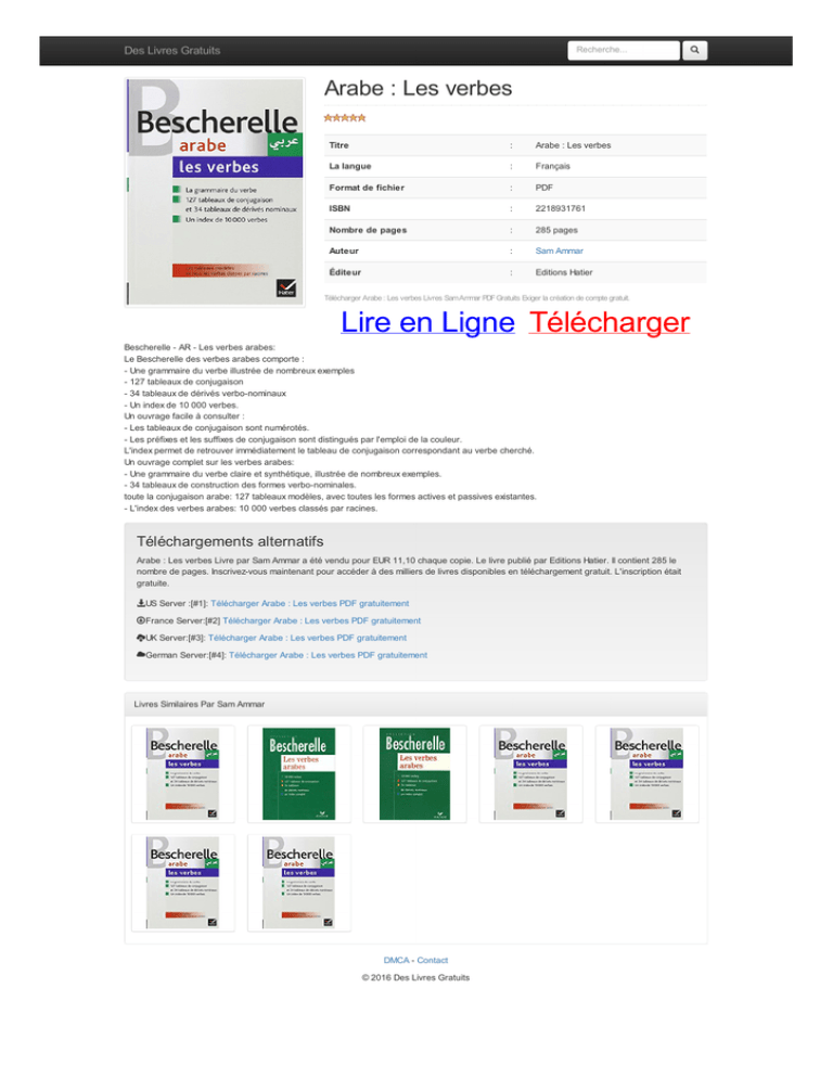 Des Livres Gratuits Recherche... Arabe : Les verbes Titre : Arabe : Les verbes La langue : Français Format de fichier : PDF ISBN : 2218931761 Nombre de pages : 285 pages Auteur : Sam Ammar Éditeur : Editions Hatier Télécharger Arabe : Les verbes Livres Sam Ammar PDF Gratuits Exiger la création de compte gratuit. Lire en Ligne Télécharger Bescherelle - AR - Les verbes arabes: Le Bescherelle des verbes arabes comporte : - Une grammaire du verbe illustrée de nombreux exemples - 127 tableaux de conjugaison - 34 tableaux de dérivés verbo-nominaux - Un index de 10 000 verbes. Un ouvrage facile à consulter : - Les tableaux de conjugaison sont numérotés. - Les préfixes et les suffixes de conjugaison sont distingués par l'emploi de la couleur. L'index permet de retrouver immédiatement le tableau de conjugaison correspondant au verbe cherché. Un ouvrage complet sur les verbes arabes: - Une grammaire du verbe claire et synthétique, illustrée de nombreux exemples. - 34 tableaux de construction des formes verbo-nominales. toute la conjugaison arabe: 127 tableaux modèles, avec toutes les formes actives et passives existantes. - L'index des verbes arabes: 10 000 verbes classés par racines. Téléchargements alternatifs Arabe : Les verbes Livre par Sam Ammar a été vendu pour EUR 11,10 chaque copie. Le livre publié par Editions Hatier. Il contient 285 le nombre de pages. Inscrivez-vous maintenant pour accéder à des milliers de livres disponibles en téléchargement gratuit. L'inscription était gratuite. US Server :[#1]: Télécharger Arabe : Les verbes PDF gratuitement France Server:[#2] Télécharger Arabe : Les verbes PDF gratuitement UK Server:[#3]: Télécharger Arabe : Les verbes PDF gratuitement ☁ German Server:[#4]: Télécharger Arabe : Les verbes PDF gratuitement Livres Similaires Par Sam Ammar DMCA - Contact © 2016 Des Livres Gratuits