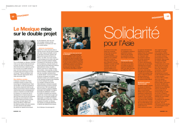 Engagements_58a61_baf 14/04/05 14:39 Page 60 GEMENT 060 > ENGA NT ENGAGEME > 061 Solidarité pour l’Asie Le Mexique mise sur le double projet et, plus largement, selon les mots d’un manager mexicain, de faire de l’entreprise «une famille unie» face à un marché difficile. … pérennes et productives Pour se développer au Mexique, DANONE mise sur son double projet économique et social. Sur place, sa réussite est en effet intimement liée à l’attention portée aux hommes et à la réalité sociale du pays. Comment traduire sur le terrain le double projet économique et social du Groupe ? Danone de Mexico s’est attelé à résoudre cette équation dès le milieu des années 1990. Des initiatives sociales… A l’époque, la situation est critique : le Mexique traverse une grave crise économique et l’entreprise doute. Plutôt que de définir un plan de reconquête de ses marchés uniquement fondé sur des facteurs économiques, Danone de Mexico choisit de faire le pari du développement social en s’inspirant d’une idée simple : la croissance ne viendra pas sans le développement et l’épanouissement des hommes et les femmes de l’entreprise. Une idée qui est le fondement même du double projet économique et social du Groupe, formalisé depuis 1972. Danone de Mexico multiplie alors les initiatives sociales, avec pour ambition de mieux associer et faire adhérer les salariés aux objectifs économiques Aujourd’hui, la crise mexicaine reste un mauvais souvenir mais les actions sociales sont, elles, toujours d’actualité, comme en témoigne Luis Olvera, directeur des Ressources humaines de Danone de Mexico. «En 2004, nous avons reversé un pourcentage de nos ventes à des associations s’occupant d’enfants malades. Ce programme a été étendu aux enfants de nos salariés qui, faute de moyens, ne peuvent assumer des traitements médicaux particulièrement onéreux. En 2004, Danone a ainsi pris en charge les soins de 34 enfants.» Autre exemple, en 2004, Danone de Mexico multiplie les partenariats avec les universités mexicaines dans un double objectif : recruter les managers de demain et préparer les étudiants mexicains à entrer sur le marché du travail en leur exposant les besoins des entreprises ou en leur expliquant les secrets d’un entretien d’embauche réussi. Cette déclinaison mexicaine du double projet économique et social du Groupe porte ses fruits : 99% des salariés de Danone de Mexico s’estiment satisfaits de travailler chez DANONE. Par ailleurs, des études de satisfaction montrent de manière convergente que la grande majorité des consommateurs jugent que Danone est une entreprise socialement responsable. La société vient d’ailleurs d’être distinguée en étant élue «meilleure entreprise où travailler» au Mexique. Une situation qui participe pleinement à l’atteinte des objectifs économiques. > Dès les premiers jours qui ont suivi la catastrophe, les filiales indonésiennes du Groupe mettaient en place une cellule de crise, DANONE for Aceh, et distribuaient des dizaines de milliers de bouteilles d’eau, de paquets de biscuits et de boissons lactées convoyés au nord de Sumatra par hélicoptère. En Inde, les équipes de Britannia se sont aussi mobilisées pour acheminer vers Andaman et les îles Nicobar plusieurs tonnes de biscuits, ainsi que d’autres denrées alimentaires, des vêtements et des tentes. La mobilisation a vite touché les autres filiales du Groupe. Au lendemain de la catastrophe qui a durement touché l’Asie du Sud-Est en décembre 2004, le Groupe DANONE et ses salariés se sont mobilisés pour venir en aide aux victimes du tsunami. Pour plus d’efficacité, le Groupe DANONE a souhaité d’emblée concentrer son aide vers l’Indonésie, pays le plus durement frappé et où il dispose d’une implantation particulièrement forte, en s’engageant à distribuer gratuitement plusieurs millions de ses produits aux populations d’Aceh, dans la région de Sumatra. Coordonner l’action «Dès les premiers jours, nous avons mis en place une cellule de crise et un programme DANONE for Aceh, puis offert notre aide aux différentes ONG et aux agences internationales présentes sur le terrain, explique Owen Ow, président de Danone Indonésie, car l’important, dans ces situations extrêmes, est de bien coordonner l’action de chacun.» Fin février, cette démarche, soutenue par les trois filiales indonésiennes du Groupe, avec l’aide de leur distributeur local de produits, Pak Yunus, et de l’armée, avait déjà permis d’acheminer 2 millions de bouteilles d’eau Aqua, 2 millions de paquets de biscuits Biskuat et 0,8 million de bouteilles de boissons lactées Milkuat. Mobilisation partout dans le monde Par ailleurs, plusieurs salariés du Groupe ont décidé de dédier leur temps au projet, dans un environnement difficile et face à des enjeux logistiques et politiques parfois complexes. Des actions menées en «toute humilité». «Face à une telle catastrophe, nous devons rester modestes, même si nous avons, je crois, fait ce qui était attendu d’une entreprise comme DANONE», précise Owen Ow. Cette volonté de se rendre Sur le Mexique, lire aussi page 32. DANONE 2004 ©SIPA DANONE 2004 utile a également gagné l’ensemble du Groupe, et de nombreux salariés de DANONE dans le monde ont souhaité contribuer personnellement à l’effort de solidarité. Dans le cadre de l’initiative DANONE Solidarité pour l’Asie, un partenariat avec la CroixRouge a été mis en place pour répondre au premier besoin des organismes humanitaires : collecter des fonds qui seront immédiatement convertis en aide matérielle appropriée à chaque situation. Fin février 2005, la mobilisation des salariés, augmentée de celle de plusieurs filiales, avait permis de récolter 420 000 euros. Ces dons ont été reversés intégralement aux différentes antennes nationales de la Croix-Rouge ou du Croissan