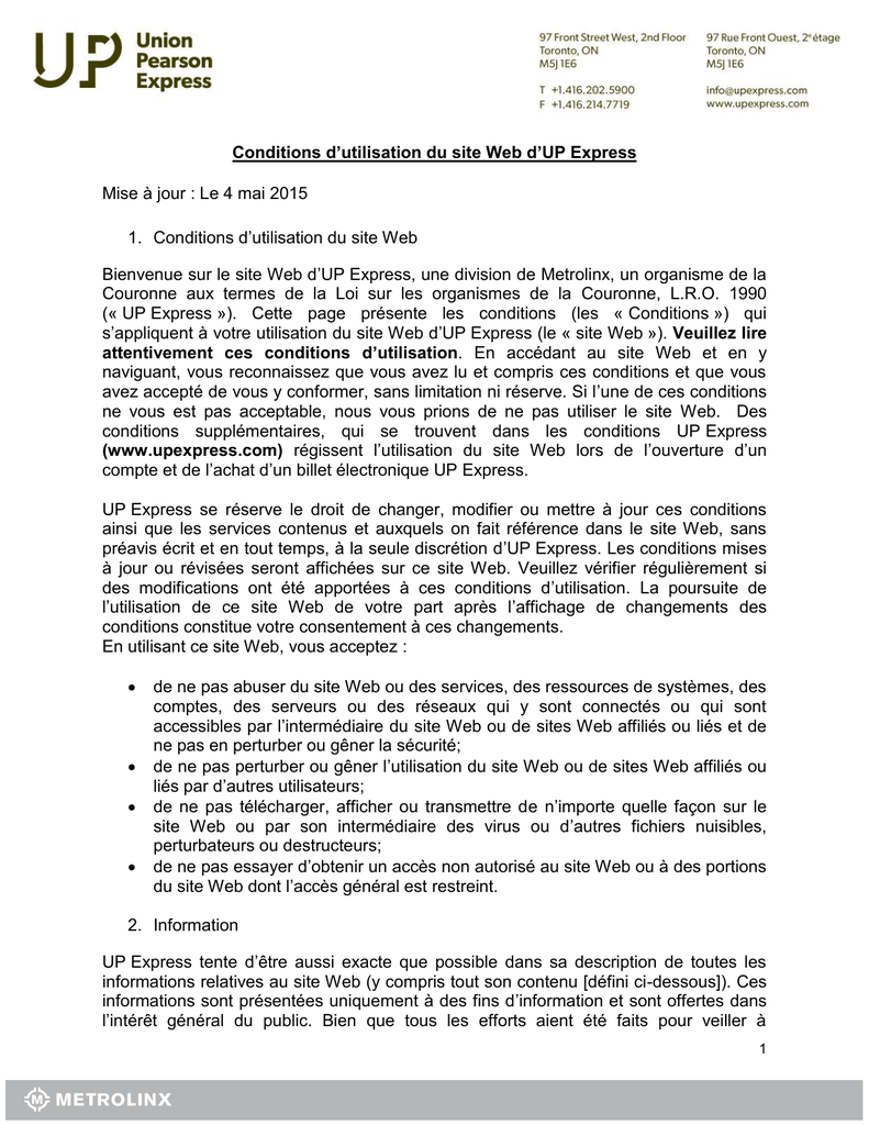 Modalités d`utilisation du site Web d`UP Express en date du 2015