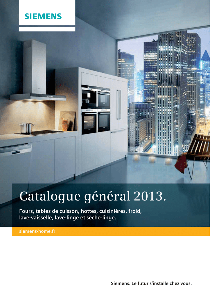 Catalogue général 2013. Fours, tables de cuisson, hottes, cuisinières, froid, lave-vaisselle, lave-linge et sèche-linge. siemens-home.fr Siemens. Le futur s’installe chez vous. s Modèles A condensation Caractéristique WT48Y880FF WT46W540FF WT46W360FF WT44W180FF WT46S584FF Type d’installation Mise sous plan dans niche de 85cm App.encastr. sous plan travail App.encastr. sous plan travail App.encastr. sous plan travail App.encastr. sous plan travail Capacité nominale pour le programme coton standard - NEW (2010/30/EC) 8,0 7,0 7,0 7,0 8,0 Volume du tambour 112 112 112 112 112 Matériau du tambour Inox Inox Inox galvanisé Inox Système de contrôle d’humidité Auto par détect. humidité, Conden. air par pompe chaleur Auto par détect. humidité, Conden. air par pompe chaleur Auto par détect. humidité, Conden. air par pompe chaleur Auto par détect. humidité, Conden. air par pompe chaleur Auto par détect. humidité Options de départ différé continu continu continu sans depart diff. continu S’offrir Siemens pour le plaisir. Et découvrir la perfection. Pour vous lemaximum design de estdépart un art de (h) vivre au quotidien, Délai retardé 24 Vous rêvez d’une maison oùrestant tout est pensé ●pour Afficheur digital de temps consommer le moins d’énergie possible, , Acoustique Indicateur de fin de cycle Vous aimez les innovations quand elles sont aussi ● étonnantes quedesimples à du utiliser, Indicateur saturation filtre Vous recherchez la perfection qui traverse le ● temps, Voyant bac plein Avec Siemens, offrez un bel avenir à votre cuisine… ● Eclairage intérieur Car nous sommes convaincus que chaque appareil ● Conduit d’évacuation deau électroménager doit s’adapter le plus précisément Emplacement des sorties d’air possible à vos besoins, voire même les anticiper. Nous 24vous invitons donc24à parcourir ce catalogue qui vous●accompagnera dans● votre projet et vous - permettra de sélectionner l’appareil qui répondra au mieux à vos Acoustique, LCD-display Acoustique, LCD-display LED attentes en terme de performance, de design et ● ● d’efficacité énergétique. ● ● ● Nous● vous remercions de● votre confiance. ● ● ● - ● ● - - - Siemens, le futur s’installe chez vous. ● Acoustique, LCD-display Tension (V) 220-240 220-240 220-240 220-240 220-240 Hauteur appareil (mm) 842 842 842 842 842 Largeur appareil (mm) 597 598 598 598 598 Profondeur appareil (mm) 634 626 626 626 626 Profondeur porte ouverte à 90° (mm) 1086 1060 1060 1060 1060 Longueur du cordon électrique (cm) 145,0 145,0 145,0 145,0 145,0 Fréquence (Hz) 50 50 50 50 50 Poids net (kg) 55 55 55 55 45 Puissance de raccordement (W) 1000 1000 1000 1000 2800 Intensité (A) 10 10 10 10 16/10 Consommation : coton prêt à ranger 1000 tr/min 1,5 1,7 1,9 2,2 Classe d’efficacité énergétique - NEW (2010/30/EC) A++ A+ A+ A+ Consommation d’énergie annuelle pondérée - NEW (2010/30/EC) 213,0 236,0 258,0 279,0 Durée pondérée du programme 146 124 124 124 Classe de taux de condensation - NEW (2010/30/EC) B B B B Classe énergétique B 4,5 Niveau sonore (dB(A) re 1 pW) 63 65 65 65 61 Code EAN 4242003604960 4242003622476 4242003622469 4242003620953 4242003538982 Le bon design est celui dont on ne se lasse pas. Créez-vous une cuisine inspirante, où vous aurez plaisir à passer du temps, jour après jour. Qualité des matériaux, pureté des lignes… un appareil signé Siemens s’harmonise naturellement avec tous les appareils Siemens ainsi qu’avec votre style. Il vous offre les fonctionnalités dont vous rêviez, dans la dimension qui vous convient, grâce à l‘étendue de sa gamme. Un design élégant où se cache une technologie de pointe. Nos valeurs. Un design reconnu. Une fabrication précise et des finitions parfaites, une qualité exceptionnelle et des services qui vous accompagnent à tout moment, sont les valeurs fondatrices de la marque Siemens. Dans les cuisines ouvertes d’aujourd’hui, le design des produits électroménagers est primordial. A cet égard, les produits Siemens se distinguent largement des autres avec leurs lignes épurées et leur style harmonieux. Reconnue pour son design, Siemens obtient chaque année de nombreux prix jury dont l’I.F. Product Design Award, qui compte parmi les trophées les plus prestigieux de sa catégorie. Et pour de nombreuses personnes partout dans le monde, ce nom est à juste titre, synonyme d’une grande qualité «made in Germany.» La haute-technologie dans votre cuisine. Dans un monde en pleine mutation où le numérique ne cesse de prendre de l’ampleur, les appareils Siemens se font l’emblème d’un style de vie moderne. En mettant à profit leur intelligence, ils deviennent de véritables assistants interactifs, tout en restant simples et intuitifs. Car nous n’oublions pas qu’ils ont pour vocation de simplifier la vie de leurs utilisateurs. Découvrez en vidéo le processus qualité chez Siemens en flashant ce QR Code. 5 Les engagements de Siemens pour préserver notre planète. Parce que les questions environnementales et climatiques sont devenues des enjeux prioritaires, plus de 2200 chercheurs travaillent quotidiennement pour développer des produits utilisant efficacement les ressources. En effet, les appareils Siemens comptent parmi les plus économiques du marché en matière de consommation d’énergie et d’eau. A ce titre, fin 2011, BSH électroménager a reçu en Allemagne le statut Klimaschutz unternehmen (entreprise engagée dans la lutte contre le changement climatique) saluant ainsi sa force d’innovation et son engagement en faveur de l’environnement. Des consommations réduites grâce à des appareils électroménagers efficaces. Un large potentiel d’économies d’énergie. Dans le cycle de vie d’un appareil électroménager, 90 à 95% de son impact environnemental est imputable à sa phase d’utilisation. C’est pourquoi, le développement d