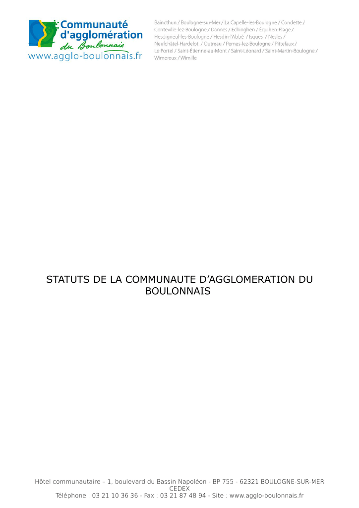 statuts de la communaute d`agglomeration du boulonnais