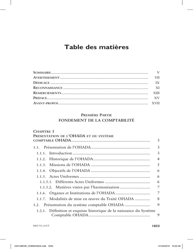 Table des matières