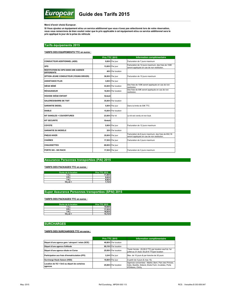 Guide des Tarifs 2015
