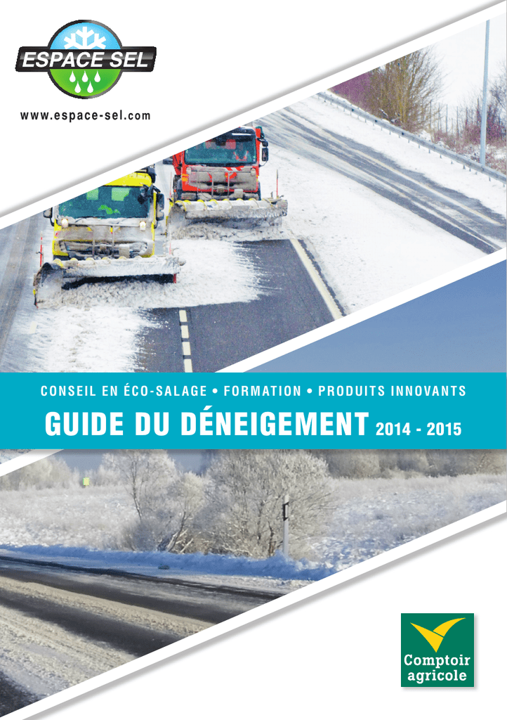 w w w. e s p a c e - s e l. c o m C O N S E I L E N É C O - S A L A G E • F O R M AT I O N • P RO D U I T S I N N O VA N T S GUIDE DU DÉNEIGEMENT 2014 - 2015 EDITO SALEZ MOINS, SALEZ MIEUX AVEC ESPACE SEL ! Choisir Espace Sel c’est associer un choix de produits adaptés avec, une expertise répondant à vos problématiques de votre viabilité hivernale dans une démarche éco-responsable. La viabilité hivernale est l’ensemble des procédures opérationnelles de déneigement ou d’épandage de fondants routiers. Elle s’adapte et évolue à chaque saison afin d’assurer son rôle : le maintien ou le rétablissement des conditions de circulation satisfaisantes du point de vue de la sécurité des usagers de la route, de la continuité des activités économiques. Salez moins, Salez mieux, tel est le modèle que tout un chacun devra adopter dans les prochaines années avec un salage plus économiquement performant et plus écologiquement traçable. Après la norme XP 98/180 pour le sel de déneigement (chlorure de sodium), la norme XP98/181 a vu le jour pour les autres fondants routiers (Viaform, chlorure de calcium, chlorure de magnésium). Espace Sel est là pour vous accompagner dans votre pilotage : TECHNIQUE : ã C onseils pour optimiser des opérations de déneigement, (Plan de déneigement, outils aide à la décision) ã O ptimisation du parc matériel (calibrage des saleuses…) ENVIRONNEMENTAL : ã O util de diagnostic de la santé de votre patrimoine végétale ã F ormation à la Viabilité Hivernale (protection du patrimoine végétal sensibilisation aux phénomènes météo…) ã G amme Viaform (produits respectueux de l’environnement) DÉCOUVREZ NOS OUTILS DE PILOTAGE DE LA VIABILITÉ HIVERNALE SUR NOTRE SITE WWW.ESPACE-SEL.COM HIVER 2014-2015 / p.2 www.espace-sel.com / Tél. 03 90 22 71 30 / Fax 09 72 28 62 04 / [email protected] QU’ES T- CE QUE LE SA L AGE ? UN BON R A C L A G E VA U T M IEU X QU’UN M AU VA IS S A L AG E ! Le salage consiste à épandre sur les chaussées des produits fondants qui sont destinés à empêcher la formation d’une couche de neige résiduelle de glace ou à faire fondre une glace déjà formée. PRODUIT DE DÉNEIGEMENT SOLIDE RÉSERVOIRS PRODUIT DE DÉNEIGEMENT LIQUIDE Le raclage sert à désolidariser la neige du revêtement. La couche de neige résiduelle doit être la plus fine possible afin augmenter l’efficacité des fondants. Les outils utilisés doivent être adaptés au type de neige à racler. ÉPANDAGE DE FONDANTS GRANULÉS OU LIQUIDE Les fondants que l’on peut utiliser sont : ã L e sel (NaCl - chlorure de sodium) ã Le chlorure de calcium (CaCl2) ã Le chlorure de magnésium (MgCl2) ã La bouillie de sel NEW! ã L e Viaform granular (CHO2Na - formate de sodium) NEW! ã L e Viaform liquide (CHO2K - formate de potassium) Les produits fondants routiers peuvent être épandus indépendamment sous forme de granulés ou de liquide (que l’on nomme aussi saumure). Pour une meilleure efficacité, une solution mixte simultanée est préconisée (granulés + liquide). www.espace-sel.com / Tél. 03 90 22 71 30 / Fax 09 72 28 62 04 / [email protected] HIVER 2014-2015 / p.3 CONSEILS TECHNIQUES LE RACLAGE L’ÉCO -SA L AGE RESP ONSA BLE L’éco-salage responsable : C’est optimiser les opérations de déneigement avec une stratégie adaptée (produit, quantité, réglages, facteurs météo, localisation) pour limiter l’impact des fondants sur l’environnement. Verglas par congélation d’eau Mélange Viaform liquide et solide en 1 passage Efficace immédiatement Efficace immédiatement Traitement par la bouillie de sel (sel granulé + saumure liquide) en 1 passage Efficace presque immédiatement (quelques minutes) Efficace presque immédiatement (5min) Viaform liquide 5gr/m2 Efficace immédiatement, risque de dilution si le dépôt se poursuit Efficace immédiatement, risque de recongélation si températures froides Viaform granular 10gr/m 2 Efficace immédiatement Efficace avec un léger retard (5min) 12,5cm 3 /m 2 immédiatement, risque soit 4g de sel de dilution si le dépôt Efficace se poursuit Efficace immédiatement, risque de recongélation si température froide Efficace avec un léger retard (15 à 30min) Efficace avec un retard important (+ de 30min) Efficace avec un retard Efficace avec un retard (10min) (10min) (CHO2Na - formate de sodium) ONS PRODUITS ONNE QUANTITÉ Dépôt de givre (CHO2K - formate de potassium) CONSEILS TECHNIQUES ON ENDROIT Solution liquide de sel de saumure (NaCl - sel fin épuré) Sel granulé 15gr/m 2 Chlorure de calcium (CaCl2) 15gr/m 2 Chlorure de magnésium (MgCl2) 20gr/m DIMIX (NaCl - CaCl2) 10gr/m 2 Efficace immédiatement Efficace immédiatement 1L/m2 Efficace avec un retard Efficace avec un retard (NaCl - chlorure de sodium) StopGliss - uniquement rue pietonne, trottoirs (MgCl2) ON CONSEIL HIVER 2014-2015 / p.4 2 Espace Sel vous accompagne dans votre démarche (questionnaire de viabilité hivernale, simulateur www.espace-sel.com / Tél. 03 90 22 71 30 / Fax 09 72 28 62 04 / [email protected] L’ÉCO-SALAGE EN PRATIQUE AVEC LA RÈGLE DES Verglas par pluie sur sol gelé Verglas météorologique par pluie Neige sèche froide (poudreuse) -3° à -5° Neige humide 0° à -4° Neige mouillée 0° à -3° Efficace, résistance à la dilution Efficace, bon compromis au traitement d’attaque Raclage + traitement Raclage + traitement 1er raclage + 2ème raclage + traitement Bonne resistance à la dilution Efficace, bon compromis au traitement d’attaque Raclage + traitement Raclage + traitement 1er raclage + 2ème raclage + traitement Efficace mais dilution rapide Efficace en traitement d’attaque uniquement Raclage + traitement Raclage + pas de traitement dilution rapide Raclage + pas de traitement dilution rapide Efficace avec un léger retard (5min) Efficace mais dilution rapide Raclage + traitement Raclage + traitement 1er raclage + 2ème raclage + traitement Inefficace 