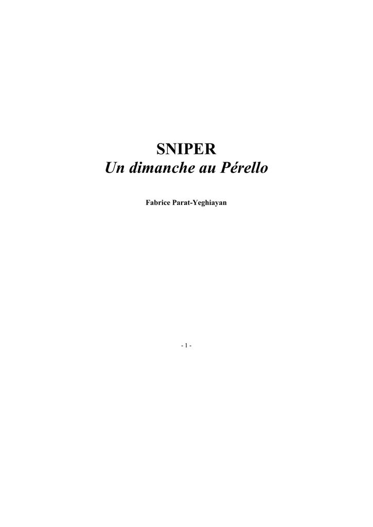 SNIPER Un dimanche au Pérello Fabrice Parat-Yeghiayan -1- -2- Sniper, un dimanche au Pérello -3- Même les cargos se perdent Pendue Qu’elle est Au phone. Allo ! Il arrive quand déjà C’est demain je crois Demain oui et j’ai peur De la guerre ce qu’il sera Je me souviens de son regard La dernière fois il a tellement peur. La fenêtre de la chambre est mon miroir, La nuit je m’y réveille et m’interroge je suis Seule avec mes doutes, il fait si sombre, seule Avec mes vagues mes insomnies sans mon homme Ou je l’imagine dans une croix d’arbres, en sniper ; il tue Le temps avec nos photos, tout ce qui le relie à notre amour, Je sais bien que ses pensées ses doutes restent là-bas la phalange Sur la gâchette, il ne raconte pas l’attente tout en haut du complexe De Skanderja. Les tirs à l’aveugle sur l’autre sniper un bosniaque un serbe Peu importe. La femme en chien de fusil au milieu de l’avenue lui doit sa mort. Combien de temps elle reste là son imper beige serré à la taille ses bottines Comme celles d’un pantin sa belle chevelure blonde auréolée de la tâche De sang l’océan nous lave de nos dégoûts je pense à l’envers des vies. Je rentre hier : elle m’attend à la gare de Lorient, sous les averses. Je fume une autre cigarette. Elle se tait pour le ressac du Pérello. -4- « N’écoute plus trop mes guerres mon ange et par la lande Revenons à la maison. Ô mais regarde cette fille là-bas ! On dirait Mireille Perrier, non ? Tu ne trouves pas ? Qu’est-ce qu’elle attend sur l’écueil, madame Eh oh la marée monte rapidement la mer Madame faites attention, faut revenir. » Elle ne m’entend pas je me précipite Contre le sens de l’écume je tombe Dans les enlacements d’une vague Je me relève je crève de froid elle N’est plus là je me retourne vers La plage tu y es seule souriante Comme sur cette photo de toi Je la garde devant mon fusil, Elle est toujours entre moi Les démons et les démons Et tu ris à si grands éclats Quand je sors de la mer J’approche mes lèvres Elles ont le parfum Du sel et le fracas De la renverse Je pars Sous les vents d’ouest Même les cargos Se perdent -5- Juste libre et folle Pile A l’heure Puis l’amour Ne va pas croire Qu’il est immortel Il suffit d’une erreur Dans les syllabes, un faux Rendez-vous, ton désir s’étiole Parle donc, comment l’aimer encore Il n’est plus qu’une ombre yougoslave La mort qu’il donne à distance, ces boîtes Crâniennes qui explosent super nova rouge sang De l’autre côté de la rivière mini explosion de camélias Dans le viseur de sa lunette tu veux tellement être heureuse L’attendre au cœur de la tempête en Bretagne le vent effraie les pins S’engouffre dans la cheminée tu fixes les flammes la chaleur sur tes joues Le silence n’a pas le bruit d’une caresse, nos corps et nos bouches, nos mains Qui se mélangent nos salives, l’éclair la foudre dans l’épine dorsale tombe Tu lui dis : « je pense que l’amour disparaît lentement à mesure Que nos baisers se font rares. » Puis l’amour ne dit plus rien L’attente devant l’église de Larmor qui perd ses globes Oculaires, elle n’aura même pas l’allure d’un cyclope Et sa façade de granit s’impose comme un déni Je suis décidée mon rêve mon étrange sniper -6- Je t’attends à ton retour d’opex qu’importe Si tu pleures je te convaincs d’ouvrir la fin Du désir, découvre la distance des gestes La peur d’initiative et mes yeux brillent C’est sans doute le feu ou les rafales Ce matin, le vent d’ouest à Larmor Plage, sur la promenade déserte L’océan d’un gris terre glaise Les vagues je plisse les yeux Ma lutte avec mes doutes Je te revois enfin si jeune Dans ma jeunesse cours A en vomir embrasse Le sillage illumine Mon bel horizon Je suis à moi Même pas la peur Qui nous sépare Juste libre Et folle -7- Elle sort de mes nuits blanches Bouscule Mon sniper Le bombardier Chasseur rase motte Que frémissent les feuilles La cime des arbres et larguer Sa bombe à l’ombre d’une pente Le versant nord de la colline plombe La journée vois-les courir dans les flammes Les démons de Mladic j’attends l’ordre de tuer Est-ce la semaine où la chouette hulule à minuit A même pas vingt souffles de mon repaire pas un soir Sans qu’elle me donne rendez-vous je ne dors plus la nuit Je ne dors plus tout court je scrute les tensions entre les arbres La forêt est une foule patiente on croit les troncs immobiles on se trompe Ils marchent en traînant les racines d’efforts les écorces se fendent et la sève Colle aux Rangers un arrêt au milieu du sentier écouter les branches qui s’accouplent Je ne bouge plus et les fougères sont des frémissements il faudrait que je monte Dans ce plus haut sapin me mettre à l’abri d’un autre sniper qui comme moi Aime les orgies sylvestres. Quand je raconte tout ça elle dit : « mon chéri Tu deviens fou aujourd’hui l’Est de l’Europe demain quel autre pays Ne deviens pas leurs échecs, ta guerre est sans fin elle te colle A la peau et ton regard change chaque fois que tu reviens. » A l’autre bout du labyrinthe je n’ose pas la déshabiller -8- Je n’ose pas la palpitation qui luit sous sa gorge Le signe s’affole l’ouverture de sa chemise Je la déboutonne un peu plus si tu veux Mes yeux sont les yeux d’un hibou Et ma bouche bée dans le cœur Un chasseur bombardier, bin, Je veux bien tout de suite Que le thorax explose… Vite je me réveille. Un tank serbe A vingt pas Sous moi Une illusion M’égare Elle sort De mes nuits blanches -9- A deux jusqu’à l’aurore Quelle Calanque Où plonger Les fonds clairs L’anémone infidèle Tentacules ô sacrilège L’effleurer du bout de l’index Ton corps nu se livre au soleil affamé La chair s’émeut d’un frisson, regarde ce ciel Bleu ! Je m’y assèche les yeux, ne reste que le sel La canicule bourdonne comme l’hélicoptère bourdonne Tout ça