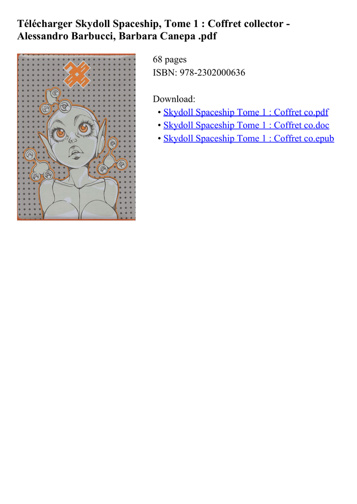 Télécharger Skydoll Spaceship, Tome 1 : Coffret collector Alessandro Barbucci, Barbara Canepa .pdf 68 pages ISBN: 978-2302000636 Download: • Skydoll Spaceship Tome 1 : Coffret co.pdf • Skydoll Spaceship Tome 1 : Coffret co.doc • Skydoll Spaceship Tome 1 : Coffret co.epub