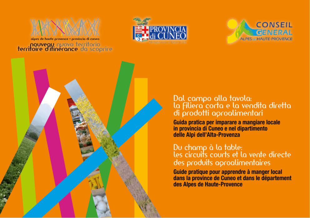 Dal campo alla tavola: la filiera corta e la vendita diretta di prodotti agroalimentari Guida pratica per imparare a mangiare locale in provincia di Cuneo e nel dipartimento delle Alpi dell’Alta-Provenza Du champ à la table: les circuits courts et la vente directe des produits agroalimentaires Guide pratique pour apprendre à manger local dans la province de Cuneo et dans le département des Alpes de Haute-Provence Dal campo alla tavola: perché? Il patrimonio enogastronomico rappresenta la carta d’identità di un territorio: gustare un prodotto agroalimentare buono e genuino o assaporare una cucina locale, varia e di qualità spesso è un’esperienza unica per conoscere e apprezzare le tradizioni di un territorio rurale. E da questo punto di vista il nostro territorio cuneese rappresenta un’eccellenza a livello nazionale. Queste considerazioni sono piuttosto consolidate nell’opinione pubblica, ma quello che forse ancora manca è una coscienza alimentare, la consapevolezza nell’acquisto del prodotto locale. I processi di globalizzazione hanno favorito una sorta di uniformità nei comportamenti, proponendo canali prestabiliti e apparentemente facili e un distacco sempre maggiore tra produttore e consumatore. L’agricoltura di prossimità può essere una risposta concreta per ridurre la distanza tra chi produce e chi acquista, generando nuove conoscenze e consapevolezze, sia nei consumatori sia nei turisti interessati al prodotto locale. Lo sviluppo di un’agricoltura basata su filiere corte e vendita diretta, che punti alla qualità e sia rispettosa dell’ambiente, è una delle principali sfide del PIT Nuovo Territorio da scoprire e del progetto Viaggio tra i prodotti tipici, i gusti, i sapori che vede impegnati in primis la Provincia di Cuneo e il Consiglio Generale delle Alpi dell’Alta-Provenza, al fine di migliorare l’economia e la qualità di vita di quest’area transfrontaliera. La presente pubblicazione nasce nell’ambito del progetto Viaggio tra i prodotti tipici, i gusti, i sapori e si propone di suggerire semplici buone pratiche per imparare a mangiare locale e diventare consumatori più consapevoli. L’obiettivo è anche quello di orientare consumatori e turisti tra le tante opportunità offerte dalla vendita diretta e dalla filiera corta. Buon viaggio alla scoperta della provincia di Cuneo e del dipartimento delle Alpi dell’Alta-Provenza guidati dalle migliori tradizioni agroalimentari e dalla qualità dei prodotti che troverete sul posto. Gianna Gancia Presidente della Provincia di Cuneo 2 Il PIT Piano Integrato Transfrontaliero Nuovo Territorio da scoprire è sviluppato dalla Provincia di Cuneo e dal Consiglio Generale delle Alpi dell’Alta-Provenza e finanziato dal Programma ALCOTRA 2007-2013, promosso dall’Unione Europea per favorire la cooperazione transfrontaliera tra Italia e Francia. L’obiettivo del Piano è sostenere un modello di turismo integrato e sostenibile, basato sulla valorizzazione economica di un patrimonio comune rappresentato da un ambiente naturale incontaminato, da produzioni agroalimentari di qualità e da tradizioni culturali condivise. Du champ à la table: pourquoi? Le patrimoine oenogastronomique représente la carte d’identité d’un territoire: goûter un bon produit agroalimentaire ou savourer une cuisine locale, variée et de qualité est une expérience unique qui permet de connaître les traditions d’un territoire. Et sur ces aspects notre territoire, la province de Cuneo, représente une excellence au niveau national. Ces affirmations sont acquises par l’opinion publique, mais il reste à développer une conscience alimentaire, c’est-à-dire sensibiliser à l’achat local. Les processus de mondialisation ont favorisé une sorte d’uniformité dans les comportements, en suggérant un approvisionnement prédéterminé et apparemment facile et une distance toujours plus croissante entre producteur et consommateur. L’agriculture de proximité peut devenir une réponse concrète pour réduire cette distance entre celui qui produit et celui qui consomme, générant des connaissances et des nouvelles prises de conscience, chez les consommateurs locaux comme chez les touristes intéressés aux produits typiques. Le développement d’une agriculture basée sur les circuits courts et sur la vente directe, sur la qualité et sur le respect de l’environnement est un des défis du PIT Nouveaux territoire d’itinérance et du projet Voyage autour des produits typiques, des goûts et des saveurs qui voit comme partenaires principaux la Province de Cuneo et le Conseil Général des Alpes de Haute-Provence. L’objectif majeur de ce projet est d’améliorer l’économie locale et la qualité de vie dans cette zone transfrontalière. Cette publication naît au sein du projet Voyage autour des produits typiques, des goûts et des saveurs et a comme finalité de suggérer des bonnes pratiques pour apprendre à manger local et devenir des consommateurs plus responsables. L’objectif est aussi de guider les consommateurs et les touristes face aux nombreuses opportunités offertes par la vente directe et les circuits courts. Bon voyage à la découverte de la province de Cuneo et du département des Alpes de Haute-Provence au travers des meilleures traditions agroalimentaires et de la qualité des produits que vous trouverez sur le territoire. Gianna Gancia Présidente de la Province de Cuneo Le PIT Plan Intégré Transfrontalier Nouveau territoire d’itinérance est réalisé par la Province de Cuneo et par le Conseil Général des Alpes de Haute-Provence et financé dans le cadre du Programme Alcotra 2007-2013, promu par l’Union Européenne afin de favoriser la coopération transfrontalière entre l’Italie et la France. L’objectif est de promouvoir un modèle de tourisme intégré et durable, fondé sur la valorisation économique d’un patrimoine commun constitué par un environnement intact, des production