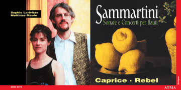 Sophie Larivière Matthias Maute ammartini S Caprice ACD2 2273 • Baroque Sonate e Concerti per flauti Rebel ATMA Giuseppe Sammartini (1693-1770) Concerto en fa majeur pour flûte à bec soprano, cordes et basse continue 1 Allegro 3:26 2 (Siciliano) 3:56 3 Allegro assai 3:34 Sophie Larivière, flûte à bec Sonate en trio op. 2, no 6 en ré mineur pour deux flûtes à bec et basse continue 4 Adagio 2:09 5 Allegro 1:38 6 Largo 1:44 7 Allegro 2:12 Matthias Maute (1963- ) Concerto detta la Sammartini en sol majeur pour flûte traversière, flûte à bec, 2 violons et basse continue 8 Allegro 4:16 9 Adagio 4:01 10 Allegro 3:09 Matthias Maute, flûte traversière Sophie Larivière, flûte à bec ENSEMBLE CAPRICE Matthias Maute, flûte à bec, flûte traversière, violon alto Sophie Larivière, flûte à bec, flûte traversière REBEL Jörg-Michael Schwarz, violon baroque Karen Marmer, violon baroque John Moran, violoncelle Dongsok Shin, clavecin Invité / Guest: Eric Lagacé, contrebasse 10:56 7:43 11:26 Giuseppe Sammartini Sonate «Sibley» en sol majeur pour flûte à bec et basse continue 11 Allegro / A tempo giusto 1:34 12 Andante 3:06 13 (Tempo di Minuetto) 3:51 Matthias Maute, flûte à bec 8:31 Concerto en ré majeur pour flûte traversière, 2 violons et basse 14 Allegro 4:51 15 Siciliano 4:18 16 Vivace 3:49 Matthias Maute, flûte traversière 12:58 Sonate en trio op. 1, no 6 en si mineur pour deux flûtes traversières et basse continue 17 Con spirito 1:12 18 Allegro 2:15 19 Andante e staccato 3:14 20 (Allegro) 4:05 10:46 Instruments : Flûtes à bec : Soprano de Jean-Luc Boudreau / Altos de Jean-Luc Boudreau / Alto de Adrian Brown Flûtes traversières : Gerhard Kowalevsky Violons : Jacobus Stainer, Absam 1668 / Antonio Maria Lavazza, Milano 1720 Violoncelle : Barak Norman, London ca. 1685 Clavecin : Dongsok Shin Enregistrement et réalisation / Recorded and produced by: Johanne Goyette Église St-Augustin, St-Augustin de Mirabel (Québec), 27, 28, 29 juin 2001 / June 27, 28, 29, 2001 Adjoints à la production / Production assistants: Valérie Leclair, Jacques-André Houle Photos : Hartmut J. Burgmann Graphisme / Graphic design: Diane Lagacé Couverture / Cover art: Citrons, oranges et rose de Francisco Zurbarán GIUSEPPE SAMMARTINI SONATE E CONCERTI PER FLAUTI u moment où Giuseppe Sammartini (proA bablement autour de 1728) quitte Milan pour aller s’installer en Angleterre, il était sûre- 4 ment un Italien parmi tant d’autres à rêver d’un avenir meilleur : il n’est pas le seul musicien à penser que les choses vont mieux de l’autre côté de la Manche. Plusieurs d’entre eux, notamment F. Geminiani, F. Barsanti et G.B. Bononcini, réussirent à y trouver de meilleurs postes qu’en Italie. Devant un tel phénomène, on se demande pourquoi il y a autant de musiciens italiens à émigrer en Angleterre au 18e siècle. Deux principales raisons nous éclairent sur la question. Les Italiens, depuis le 17e siècle, jouissent d’une brillante réputation à l’étranger. Le rayonnement de l’art italien est si grand qu’un nombre important d’étudiants d’Europe centrale décident d’aller étudier à Rome, Florence et Venise. Donc, forts de leur réputation, les musiciens italiens se font offrir des postes plus intéressants à l’étranger. La situation qui prévaut en Angleterre joue également un rôle très important dans l’histoire musicale de l’époque. Dès le début du 18e siècle, les musiciens jouissent de très bonnes conditions de travail. La couche sociale de la bourgeoisie s’émancipe lentement de la noblesse et réussit à financer d’importants pro- jets culturels. C’est à ce moment que l’on voit apparaître des séries de concerts et des compagnies d’opéra privées entièrement financées par cette classe sociale. Ces nouvelles possibilités, mêlées à de meilleures conditions de travail, créent une situation musicale très particulière en Angleterre et attirent les musiciens virtuoses de l’époque. Arrivé en Angleterre, Sammartini acquiert rapidement la réputation d’un excellent hautboïste. En 1776, Hawkins le décrit comme étant le meilleur de son temps. Après maintes expérimentations au niveau de la fabrication des anches, Sammartini, aux dires de ses contemporains, se démarque par sa sonorité exceptionnelle qui s’approche le plus de la voix humaine. Bien que nous connaissions très peu de choses au sujet de son travail sur les anches, ses qualités musicales ont rapidement été considérées par ses pairs comme étant remarquables. Il occupe une place de vedette dans le milieu musical. C’est ainsi qu’à l’orchestre de l’opéra de G.F. Haendel, sous la direction de Haendel luimême, Sammartini joue exclusivement les parties solistes, laissant la tâche au hautboïste régulier de l’orchestre de faire toutes les répétitions et se résigner à jouer seulement dans les parties orchestrales. Sammartini est également très apprécié en tant que compositeur. Cet enregistrement met en valeur l’éventail fascinant de son œuvre instrumentale. Vous y retrouverez des concertos et des sonates dont l’esprit et le charme démontrent bien l’habileté du compositeur. La pluralité des styles et des couleurs sonores est frappante. La sonate en trio en si mineur est tout à fait dans l’esprit de cette pluralité des styles. Le premier mouvement débute comme une Ouverture à la française et est donc caractérisé par des rythmes pointés. Cependant, dans le quatrième mouvement, les passages virtuoses sont pour leur part calqués sur le style italien des concertos de Vivaldi. Les sonates en trio en ré mineur et sol majeur revêtent également des formes très différentes. Tandis que la première est entièrement modelée selon le langage baroque traditionnel, la seconde, avec sa forme en trois mouvements, est beaucoup plus près de l’idéal du style galant, voire même préclassique. Dans les deux cas