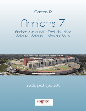 Canton 12 Amiens 7 Amiens sud ouest - Pont de Metz Saleux - Salouël - Vers sur Selle Centre Hospitalier Universitaire Amiens Picardie Guide pratique 2016 ALTHEA Pompes Funèbres - Marbrerie - Lʼorganisation et lʼaccompagnement des funérailles - Vente de caveaux et monuments - Ventes de plaques et de fleurs artificielles - Possibilité de fleurs naturelles sur commande - Nettoyage, entretien et fleurissement des sépultures - Contrat de prévoyance et protection obsèques - Transports vers les chambres funéraires - Paiement en plusieurs fois sans frais 595, route de Rouen - 80000 AMIENS Tél. : 03 22 66 03 03 - 06 83 68 06 83 Notes personnelles EDITION 2016 Guide du Canton Amiens 7 - Département de la Somme Publicité/Création & Impression : Editions Norsud - Dépôt Légal : 4ème Trimestre 2015 [email protected] • Site : www.editionsnorsud.fr 2, rue René Cassin - 80136 RIVERY - Tél. 03 22 89 02 02 • Fax : 03 22 89 45 26 RCS B 334 029 808 - S.A.S. au capital de 154.800 €- © TOUTE REPRODUCTION INTERDITE N° habilitation : 1280281 Nadia ROLLAND et Laurent AUGRIS, des professionnels à votre écoute, vous accueillent du lundi au samedi et vous apportent un véritable soutien dans vos démarches. Secrétariat d’Olivier Jardé et de Margaux Delétré Un rendez-vous, un renseignement, une intervention 53, rue de la République - BP 32615 80026 AMIENS Cedex 1 Téléphone : 03 22 71 82 92 [email protected] - [email protected] [email protected] - olivierjarde.info Vos conseillers départementaux remplaçants : Nathalie Lavallard Adjointe au Maire d’Amiens Franck Darragon Adjoint au Maire de Salouël 1 SOMMAIRE Le mot de vos conseillers départementaux ............................................................................3 Le Conseil départemental de la Somme...............................................................................4-5 Que va changer la loi NOTRe....................6-7 Les élus du Conseil Départemental Junior.................................................8-9 > Amiens........................................................................................8 - 59 Plan du canton .........................................................................10 Les mairies de quartiers de votre canton..........................................................................11 L’Union des Comités de Quartiers .......................................................................12 Les Comités de Quartiers..................13 à 15 Le culte dans le canton ...............................................16 Les activités de vos conseillers départementaux en photos.................................17 > Pont de Metz ...........................................................18 à 22 > Saleux.....................................................................................23 à 25 > Salouël.................................................................................26 à 30 > Vers sur Selle.............................................................31 à 34 La santé dans le canton........................35 à 37 Renseignements pratiques ........................38-39 Liste des annonceurs.........................................................39 Vacances scolaires ................................................................40 Editorial Madame, Mademoiselle, Monsieur, Cher(e) Ami(e) En ce début d’année, c’est avec plaisir que nous vous adressons nos vœux de santé, bonheur et réussite pour vous et ceux qui vous entourent. Le thème abordé par notre guide est la complémentarité nécessaire du conseil départemental, de la communauté d’AmiensMétropole et des communes. Dans le monde complexe dans lequel nous vivons, il n’est pas toujours évident d’apprécier qui a la compétence des éléments de notre vie quotidienne. Les enjeux dans notre canton sont multiples : déplacements, accès au numérique, activité économique et soutien aux associations etc… Souvent un résultat positif n’est obtenu que lorsque ces 3 collectivités de proximité sont en phase et qu’elles ont la volonté de travailler ensemble. C’est donc aux élus du canton Amiens 7, aux décideurs économiques et aux associations de se retrouver régulièrement pour agir de concert. Nous avons le plaisir de vous offrir le premier guide du canton Amiens 7 consacré à la présentation de chacune des 5 communes et de ses comités de quartier. Vous y trouverez la composition de chaque conseil municipal avec son maire, ses adjoints, et ses conseillers. Vous y trouverez également la présentation de chacune des communes et une série d’informations pratiques qui peuvent vous aider dans vos démarches. Comme toujours nous tiendrons des permanences à destination des habitants, des acteurs économiques, des associations et des élus. Ces permanences se tiennent en mairie dans chacune des communes selon le calendrier que vous trouverez sur le site olivierjarde.info Nous souhaitons la bienvenue aux nouveaux habitants du canton. Que ce guide soit pour eux source d’informations utiles. Les remerciements iront à toutes les personnes qui ont permis de faire ce guide et notamment aux annonceurs. Vos suggestions seront toujours bien accueillies pour la prochaine édition. Sentiments dévoués Olivier Jardé Margaux Delétré 3 Le Conseil départemental de la Somme C’est une Assemblée Départementale, composée de 46 Conseillers départementaux, élus à la parité pour 6 ans au scrutin majoritaire binominal à deux tours. Le Président du Conseil départemental de la Somme est Laurent SOMON, il est élu depuis le 02 avril 2015, il représente l’exécutif départemental, il est assisté de 13 Vice-présidents et d’un Cabinet. Les 6 commissions sont constituées pour instruire les dossiers se rapportant à leur domaine de compétence, ces commissions préparent les décisions du Conseil départemental et de sa commission permanente. 1ère : Finances, Planification 