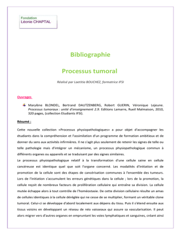 Processus tumoral - Fondation Léonie Chaptal
