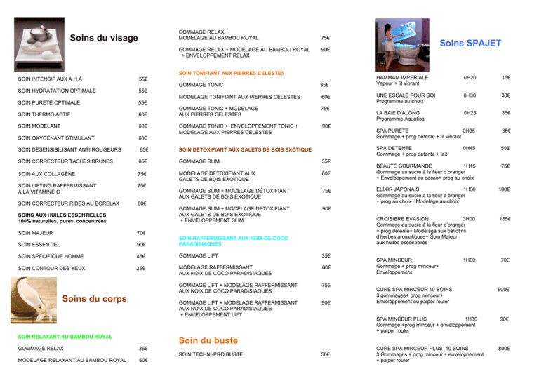 Soins du visage Soins du corps Soin du buste Soins SPAJET