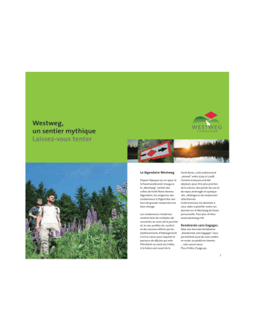 Westweg, un sentier mythique Laissez-vous tenter Le légendaire Westweg Depuis l‘époque où, en 1900, le Schwarzwaldverein inaugura le „Westweg“, sentier des crêtes de Forêt Noire devenu légendaire, les exigences des randonneurs à l‘égard des sen- Forêt Noire, a été entièrement „rénové“ entre 2005 et 2008. Certains tronçons ont été déplacés pour être plus proches de la nature, des points de vue et de repos aménagés et quelque 160 „hébergeurs de randonnée“ sélectionnés. tiers de grande randonnée ont bien changé. Cette brochure est destinée à vous aider à planifier votre ran- Les randonneurs modernes veulent faire de multiples découvertes au cours de la journée et, le soir, profiter du confort et des services offerts par les établissements d‘hébergement. C‘est la raison pour laquelle le parcours de 285 km qui relie Pforzheim au nord-est à Bâle, à la lisière sud-ouest de la 2 donnée sur le Westweg de façon personnelle. Pour plus d‘infos: www.westweg.info Randonnée sans bagages. Mais nos formules forfaitaires „Randonnée sans bagages“ vous permettent aussi de vous mettre en route, ou plutôt en chemin, ... sans aucun souci. Plus d‘infos cf page 40. 3 Qualité attestée Randonnées avec labels de qualité La randonnée est le loisir extérieur préféré des Allemands. Un Allemand sur deux dit aimer découvrir la nature à pied. Non seulement la génération des plus de 50 ans, particulièrement active, mais aussi de plus en plus de jeunes découvrent le plaisir de la randonnée. Pour répondre aux exigences croissantes de ces adeptes, la Schwarzwald-Tourismus GmbH, en association avec le club du Schwarzwaldverein veillent à promouvoir les campagnes de qualité initiées par la Fédération allemande de Randonnée sous l‘appellation „Wanderbares Deutschland“ Label qualité décerné au Westweg Le Westweg s‘est vu décerner le label qualité „Qualitätsweg Wanderbares Deutschland“, qui fixe les normes des sentiers de randonnée à l‘échelle de toute l‘Allemagne. L‘accent y est mis en particulier sur En 2007, le Westweg a reçu le label „fernwege.de AWARD“, basé sur des appréciations déposées sur le Web par des randonneurs. Le Westweg s‘avère être ainsi le sentier de grande randonnée préféré des Allemands, et n‘a dû céder la première place européenne qu‘au sentier de St Jacques de Compostelle. la nature du sentier, la diversité des paysages et le balisage. Mais on tient compte également des beaux points de vue, de l‘aménagement de points de repos ou de restauration ainsi que des accès par bus ou train. Hébergeurs de randonnée Les établissements dont l‘aménagement et les services s‘adressent tout spécialement aux randonneurs peuvent se voir décerner le label „Qualitätsgastgeber - Wanderbares Deutschland“. Ils s‘engagent à 4 accueillir les randonneurs même pour une seule nuit et à veiller particulièrement aux souhaits de ces derniers, en proposant p. ex. des paquets pique-nique ou le transport des bagages. Le label indique aux randonneurs que cet établissement est situé dans une région attrayante et qu‘ils seront accueillis par un hôte connaissant le monde de la randonnée. Les critères précis de ces deux labels peuvent être consultés sur Internet: www.wanderbaresdeutschland.de. On y trouve également la liste complète des établissements labellisés „Qualitätsgastgeber - Wanderbares Deutschland“. 5 O LD EN E PFO R TE G En chemin Collectionnez les portails Douze portails-infos le long du Westweg Les grandes portes aménagées le long du Westweg à des endroits stratégiques ont pour fonction d‘informer le randonneur sur les curiosités des environs et sur ce qui l‘attend à l‘étape suivante. Au sol, une plaque indique le tracé d‘ensemble du sentier reliant Pforzheim à Bâle. Chaque portail est différent dans son aspect et revêtu de matériaux typiques de la région, sapin, pin d‘Orégon, mélèze, bardeaux, granit, grès, blocs erratiques, ou même or. Les portails sont situés aux endroits suivants: Pforzheim, Dobel, Forbach, Freudenstadt, Bad Rippoldsau-Schappach, Seebach, Hausach, Schonach, Feldberg, Wie6 den, Todtmoos und Lörrach. Ils sont indiqués sur la carte dépliante à la fin de la brochure. Une carte spéciale est destinée à recevoir les cachets correspondant à chaque portail, que vous pouvez ainsi collectionner. Quand vous avez atteint un nombre suffisant de cachets, vous avez droit à un cadeau. Vous trouverez sur www.westweg.info des indications sur l‘endroit où vous procurer la carte et sur les cadeaux qui vous attendent. PFORZHEIM DOBEL FORBACH SEEBACH FDS-KNIEBIS Liebe Wanderer, Stempel sammeln als klassischer Fernwanderweg führt der Westweg in mehreren Tagesetappen von Pforzheim nach Basel. Er berührt dabei auf rund 280 Kilometern alle typischen Landschaftsräume des Schwarzwaldes. Entlang der Strecke wurden an exponierten Stellen 12 Portaltore errichtet, die über Sehenswürdigkeiten und Wegeverlauf informieren. Jedes der 12 Portale hat einen eigenen Stempel. Schieben Sie das entsprechende Feld bis zu der Markierung in den Schlitz des Stempelkastens am Tor und drücken den Stempel nach unten. HAUSACH SCHONACH FELDBERG WIEDEN LÖRRACH SCHAPBACH/PETERSTAL TODTMOOS Passeports et insignes de randonneurs balisant le sentier. Vous pouvez les commander auprès du Schwarzwaldverein (payants). Si vous avez parcouru le Westweg ou l‘un des deux autres sentiers des crêtes (sentier du centre „Mittelweg“ ou de l‘est „Ostweg“) dans leur totalité et que vous pouvez prouver votre passage aux différentes étapes à l‘aide d‘un passeport de randonneur, vous recevrez, si vous le souhaitez et contre une modique participation, un certificat du Schwarzwaldverein portant l‘insigne du sentier des crêtes. Vous pouvez obtenir ce passeport auprès du Schwarzwaldverein ou directement à Pforzheim. Si vous so
