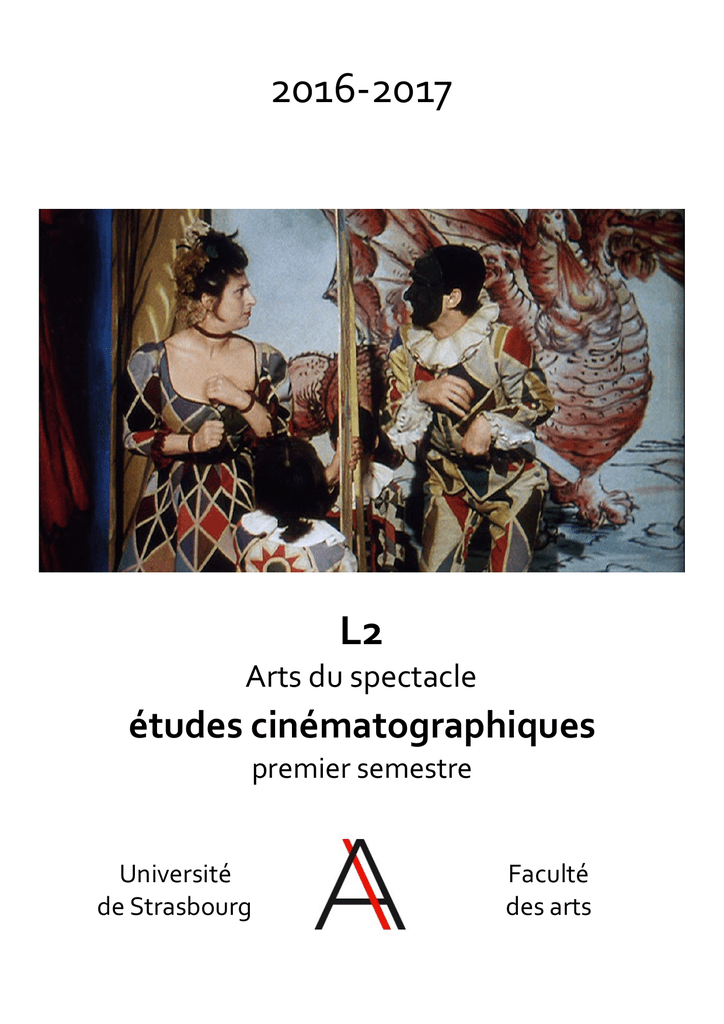 2016-2017 L2 Artsduspectacle étudescinématographiques premiersemestre Université deStrasbourg Faculté desarts ENCADREMENT Directiondudépartement ChristopheDAMOUR Responsabled’année RaphaëlSZÖLLÖSY ResponsabledelaLicence CINÉMA:BenjaminTHOMAS Responsabledesenseignementspratiques EricGALMARD ENSEIGNANTSTITULAIRES Enseignantsdudépartement Enseignantsd’autrescomposantes CatherineHASER(Facultédesarts) NathalieBITTINGER,MCF GeorgesBLOCH,MCF ChristopheDAMOUR,MCF ClaudeFOREST,PR ÉricGALMARD,PRCE Jean-FrançoisMORIS,MCF BenjaminTHOMAS,MCF CHARGÉSDECOURS EtienneCONSTANTINESCO,réalisateur MarietteFELTIN,réalisatrice DamienFRITSCH,auteur-réalisateurde documentaires Kim-MarlèneLE,doctoranteetATER(FSEG) PhilippeLEVÊQUE,réalisateur DenisOCTON,cadreuretmonteuràlaDUN 2 GrégoryRODRIGUEZ, MartineSCOUPE RaphaëlSZÖLLÖSY,doctorantcontractuel enétudescinématographiques PierreTOUSSAINT,réalisateur LauraZORNITTA PARTENAIRES AgenceCulturelled’Alsace Artenreel–Cooperatived’activitésetd’emploipourlesmétiersartistiquesetculturels Balletnationaldel’opéraduRhin CentrechorégraphiquedeStrasbourg CinémaOdyssée CinémasStaretStarSt-Exupéry CinémaUGCcineciteStrasbourg Comédiedel’Est–centredramatiquerégionald’Alsace(Colmar) StrasbourgEurométropole–directiondelaculture/audiovisueletcinéma DirectionRégionaledesAffairesCulturelles LaFilature(Mulhouse) LeMaillon–théâtredeStrasbourg Maisondel’image/Videolesbeauxjours OpéranationalduRhin Pôlesud,centrededéveloppementchorégraphique RelaiscultureldeWissembourg ThéâtreactueletpublicdeStrasbourg(TAPS) ThéâtreNationaldeStrasbourg TJP–CentreDramatiqueNationald’Alsace(Strasbourg) Théâtredesmigrateurs 3 LICENCE ARTS DU SPECTACLE [études cinématographiques] – DEUXIEME ANNEE PREMIER SEMESTRE (L2-Semestre 3) UE ECTS Coef Intitulé de l’UE Volume horaire *1 3 1 LVE (CRAL) *2 3 1 Méthodologie universitaire 16 3 3 1 Esthétique des arts de l’écran L’écriture cinématographique 20 60 4 9 3 Histoire et théorie du cinéma Histoire du cinéma classique Théories du cinéma classique Parcours d’un cinéaste classique 5 6 2 Projet professionnel Droit et économie du cinéma Découverte du monde professionnel 40 *6 3 1 Atelier de recherche et de pratique 6 groupes initiation réalisation vidéo 30 *7 3 1 UE d’ouverture Module à choisir dans une autre faculté DEUXIEME SEMESTRE (L2-Semestre 4) UE 4 ECTS Coef Intitulé de l’UE Volume horaire *1 3 1 LVE (CRAL) *2 3 1 Méthodologie universitaire 16 3 6 2 Esthétique des arts de l’écran Le cinéma documentaire Analyse filmique (3 groupes) 40 60 4 9 3 Histoire et théorie du cinéma Histoire du cinéma moderne Théories du cinéma moderne Parcours d’un cinéaste moderne *5 3 1 UE interdisciplinaire Dialogue des arts 20 *6 3 1 Atelier de recherche et de pratique 5 groupes initiation réalisation vidéo 30 *7 3 1 UE d’ouverture / ou Stage court Module à choisir dans une autre faculté UE1 AR30CU1 LangueVivanteEtrangère Coef.1/3ECTS 1moduleauchoix 24hTD ► LANGUEVIVANTEÉTRANGÈRE Enseignementhorsdépartementcoordonnéparl’EspaceLanguesPatio (voir ci-dessous) ou par un autre département de langue [languesdumonde.unistra.fr]. ESPACELANGUESPATIO LANSAD(non-spécialistes)ANGLAISETALLEMAND Lescoursd’anglaisetd’allemandpournon-spécialistessontregroupésausein del’EspaceLanguesPatioquiréunitlescoursofferts: AuCRAL(CentredeRessourcesetd’ApprentissagedesLangues).Patio, bâtiment5,étage2[cral.unistra.fr] Audépartementd’étudesallemandes.Patio,bâtiment4,étage1(Voirle guidepédagogiquedesenseignementspournon-spécialistessurlesitedu départementd'étudesallemandes[http://www.unistra.fr/index.php?id=323]) Audépartementd’étudesanglophones.Patio,bâtiment4,étage2(Voirle guidepédagogiquedesenseignementspournon-spécialistessurlesitedu départementd'étudesanglophones[http://www.unistra.fr/index.php?id=322]) Procédured'inscription: Surlesitedel’Université Formation Nosformations Apprendreles Langues Choisirletypedecours(UEobligatoire,UElibre,UEoptionnelle, etc.) EspaceLanguesPatio Inscrivez-vousenligne Contacts: Pourtoutedemanded'information,vouspouvezcontacterlesecrétariatduPôle LanSAD:[email protected]âtimentLePatio,bureau5229. Évaluation 5 Modalitésd’évaluation:serenseignerauprèsduserviceconcerné UE2 Méthodologie AR30CU21 Coef.1/3ECTS 1module AR30CM91 ►Méthodologieuniversitaire NathalieBittinger 8hCM Mardi16h-18h Amphi4LeBel ChristopheDamour 4hCM Mardi14h-16h AmphiOurisson(Chimie) Les cours de méthodologie en deuxième année de Licence se présenteront, à chaque semestre, sous la forme d’une série de 6 cours magistraux, dispensés par des enseignants-chercheurs. Ces cours approfondiront les acquis de la première année en les articulant concrètementauxexercicesd’évaluationdesUEdethéorieoud’histoire (dissertation,commentairedetexte,notesdelecture,…) Bibliographiesuccincte: CISLARUGeorgeta,CLAUDELChantal,VLADMonica,L’Ecrituniversitaire enpratique,Bruxelles,DeBoeck,2009. CHEVALIERBrigitte,Préparerunexamen.Gestionmentaleetacquisition deméthodesdetravail,Paris,Nathan,1992. Évaluation 6 Session1: 1.Devoirtempslibre(fichedelecture) 2.Devoirsurtable1h(techniquesdeladissertationouducommentairede texte) Session2: Devoirsurtable3h(questionsdecours) UE3 Esthétiquedesartsdel’écran AR33CU31 Coef.1/3ECTS 1module AR33CM30 ►L’écriturecinématographique GeorgesBloch 20hCM Mercredi14h-16h AmphiOrtscheidt(Escarpe) Musique,cinémaetaudiovisuel Onexamineradiversoutilsanalytiquesquipermettentdepréciserlerôle delamusiqueaucinéma. 1- la musique dans le rôle du narrateur (avec l’opéra comme modèle) : l’espacedudrameetl’espacedelanarration; 2-ledéveloppementdestechniques(muet,parlant,dolby,spatialisation, interaction); 3- articulations musicales et filmiques (construction des phrases et constructiontemporelle); 4-musiqueetcompositioncommemétaphore. Avoiravantlecours: CitizenKane,WestSideStory,Provad'O