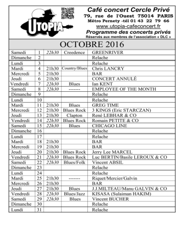 Programme des concerts OCTOBRE 2016