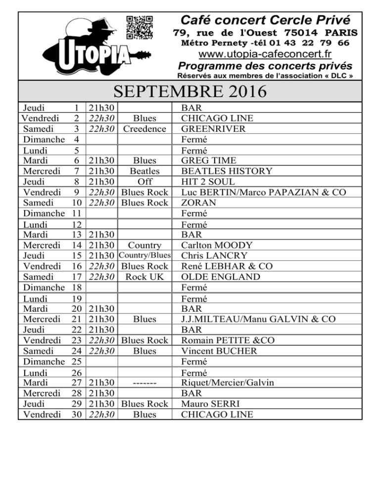 Programme des concerts SEPTEMBRE 2016