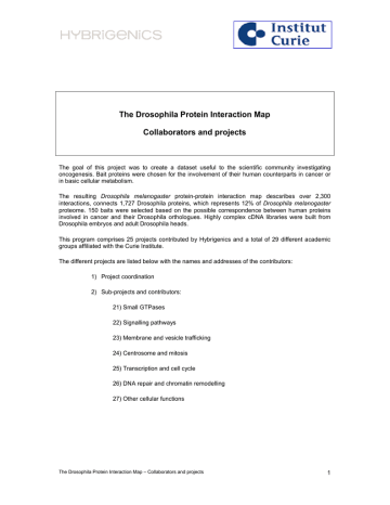 The Drosophila Protein Interaction Map Collaborators
