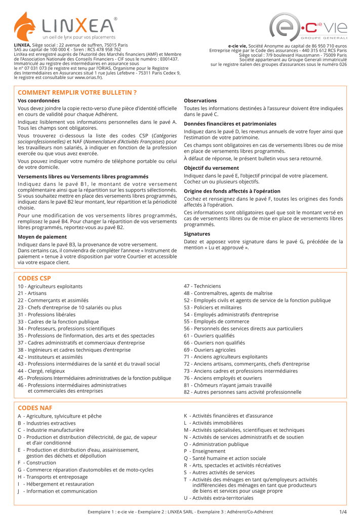 comment remplir votre bulletin ? codes csp codes naf