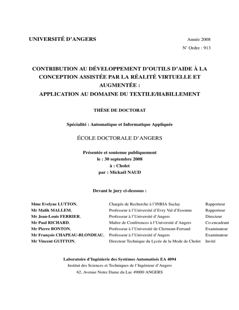 université d`angers contribution au développement d`outils d