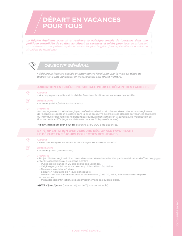politique consolidée de soutien au départ en vacances et loisirs pour tous en priorisant
