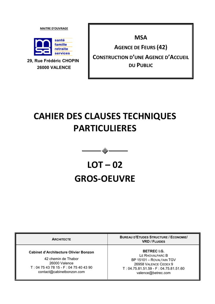 cahier des clauses techniques particulieres lot – 02 gros-oeuvre