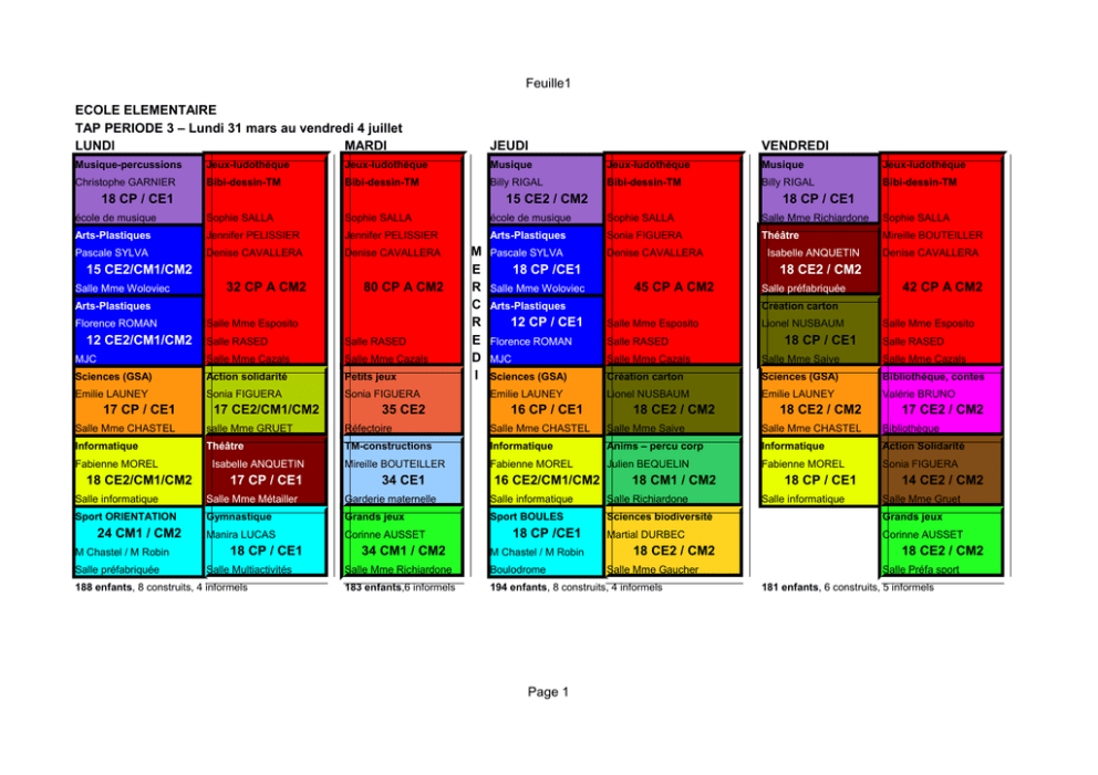 Feuille1 Page 1 ECOLE ELEMENTAIRE TAP