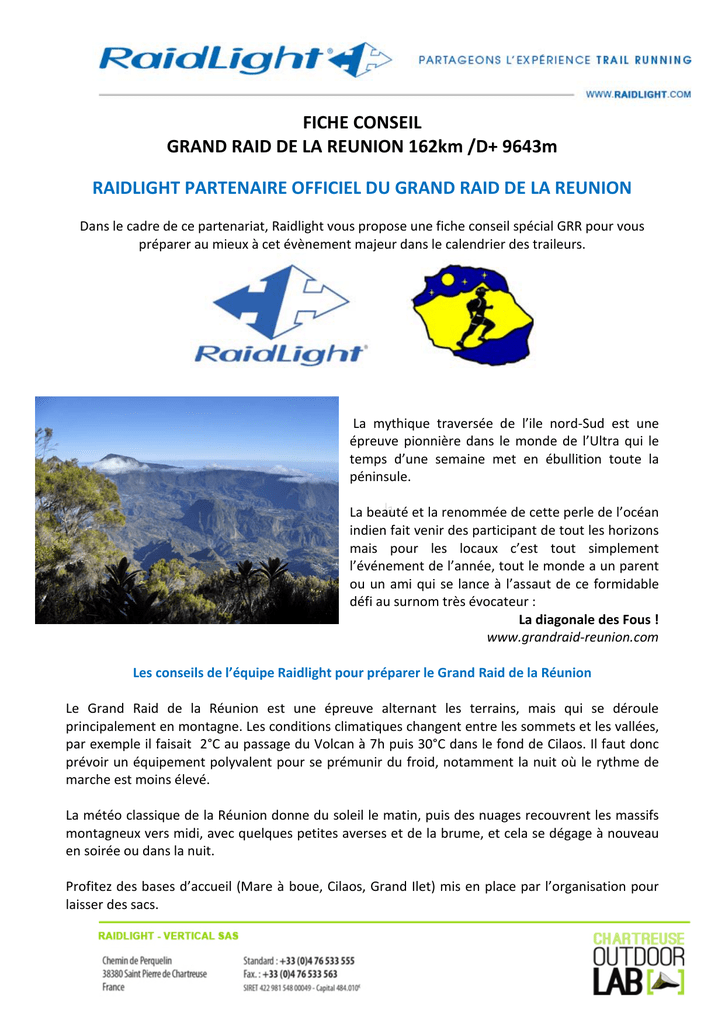 FICHE CONSEIL GRAND RAID DE LA REUNION 162km