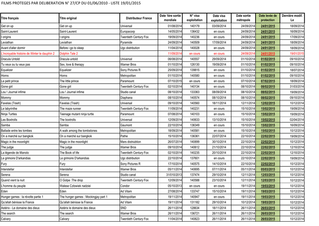 films proteges 19-01-2015 - Direction des Affaires Economiques